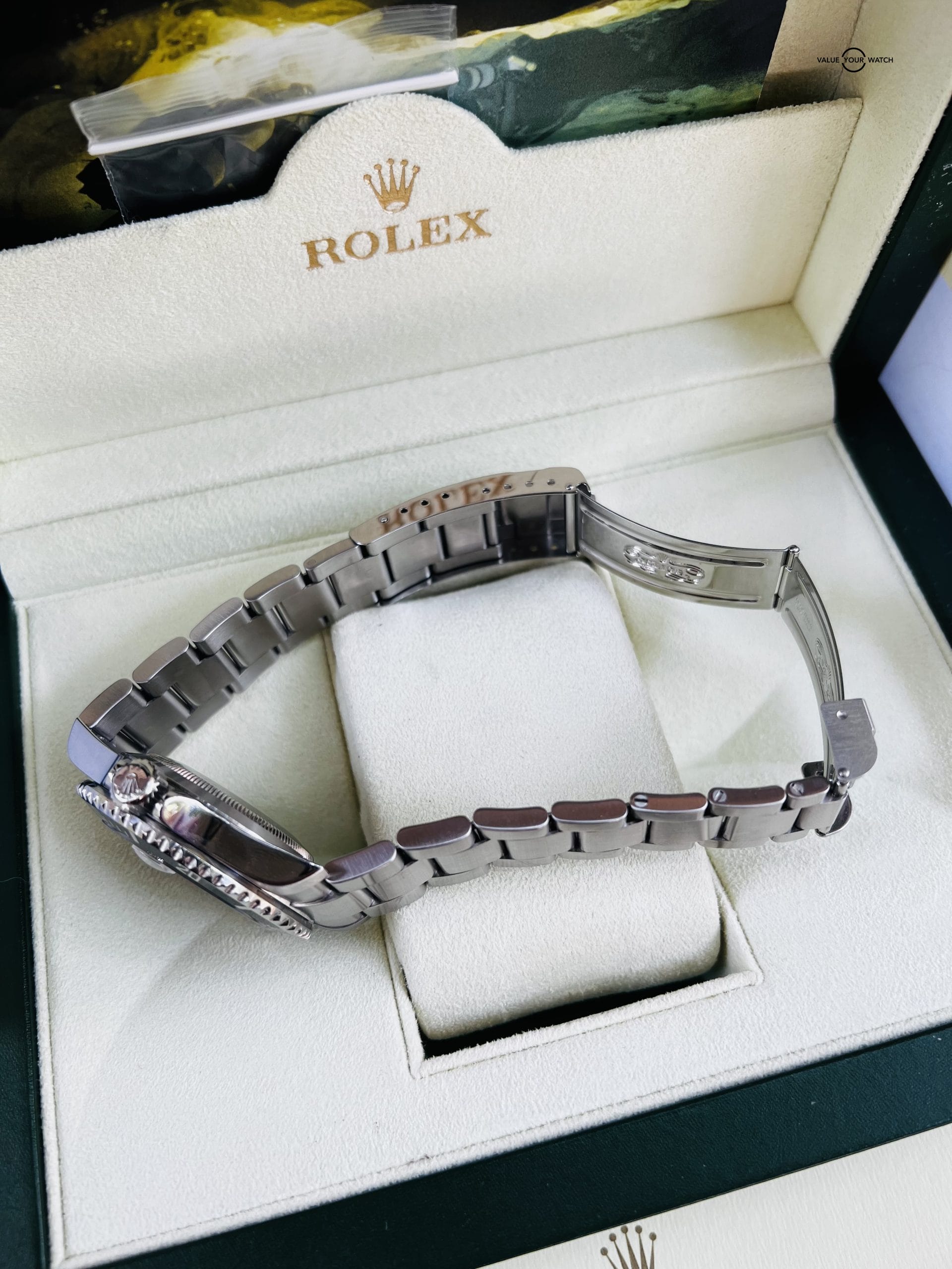 The Oyster bracelet, made from the same 904L stainless steel as the case, comes with Solid End Links (SEL), ensuring a seamless fit and adding to the overall durability of the watch. The bracelet is equipped with a secure Oysterlock clasp and a convenient wetsuit extension link.