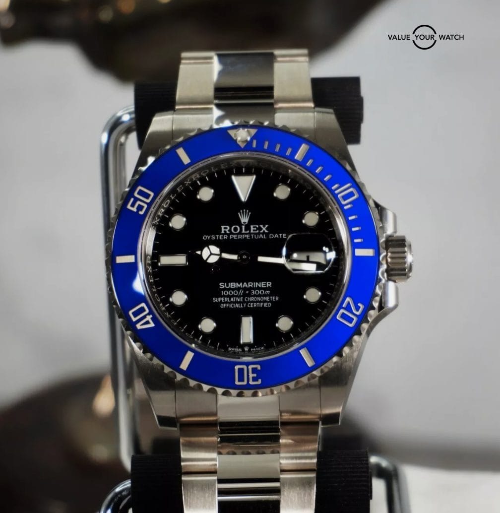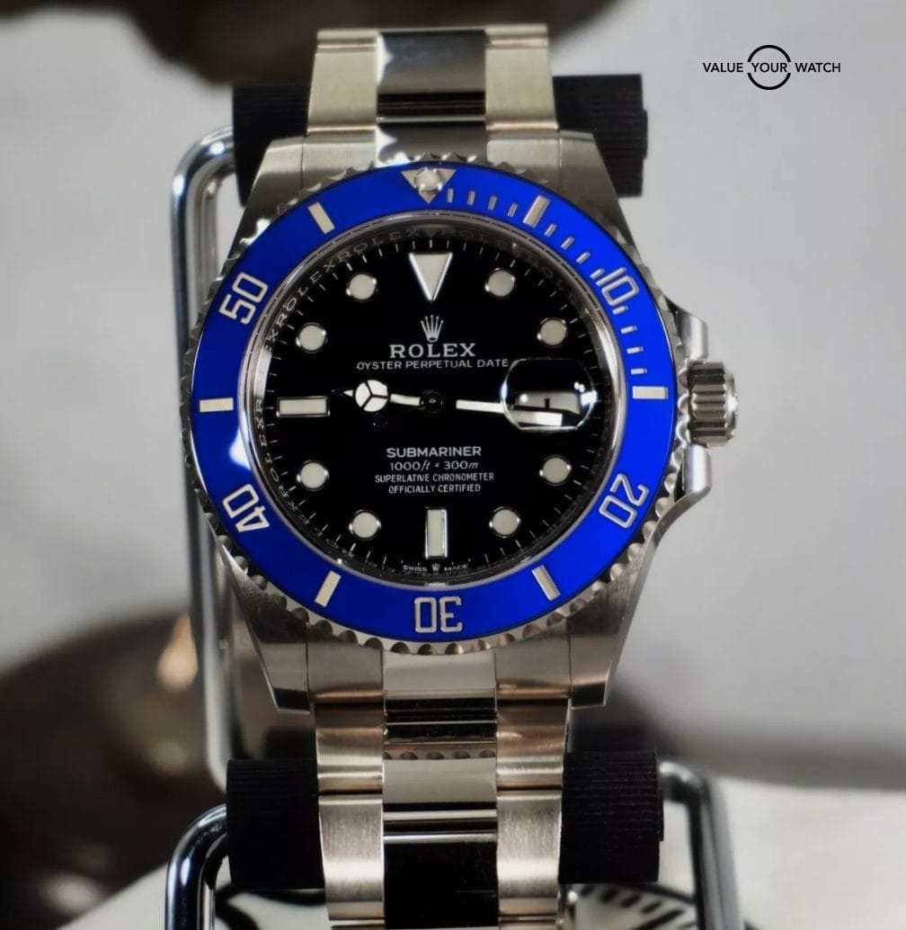 Stunning Rolex Submariner date 126619LB with striking black dial & blue bezel. This timepiece needs no introduction as its one of the iconic models in Rolex lineup. This beautiful timepiece features a complete white gold case & bracelet by Rolex. The blue bezel & bracelet just works in this hefty white gold combination and this timepiece feels superb on the wrist. I especially like how this is a stealth wealth flex from Rolex for those in the know.
