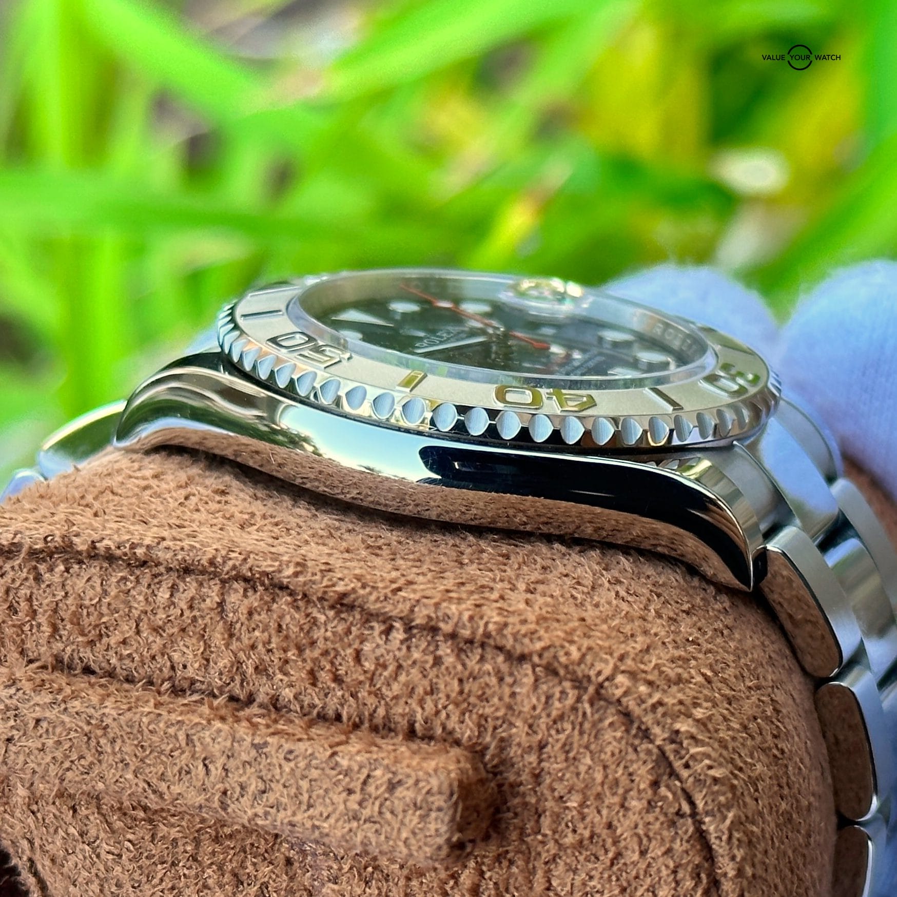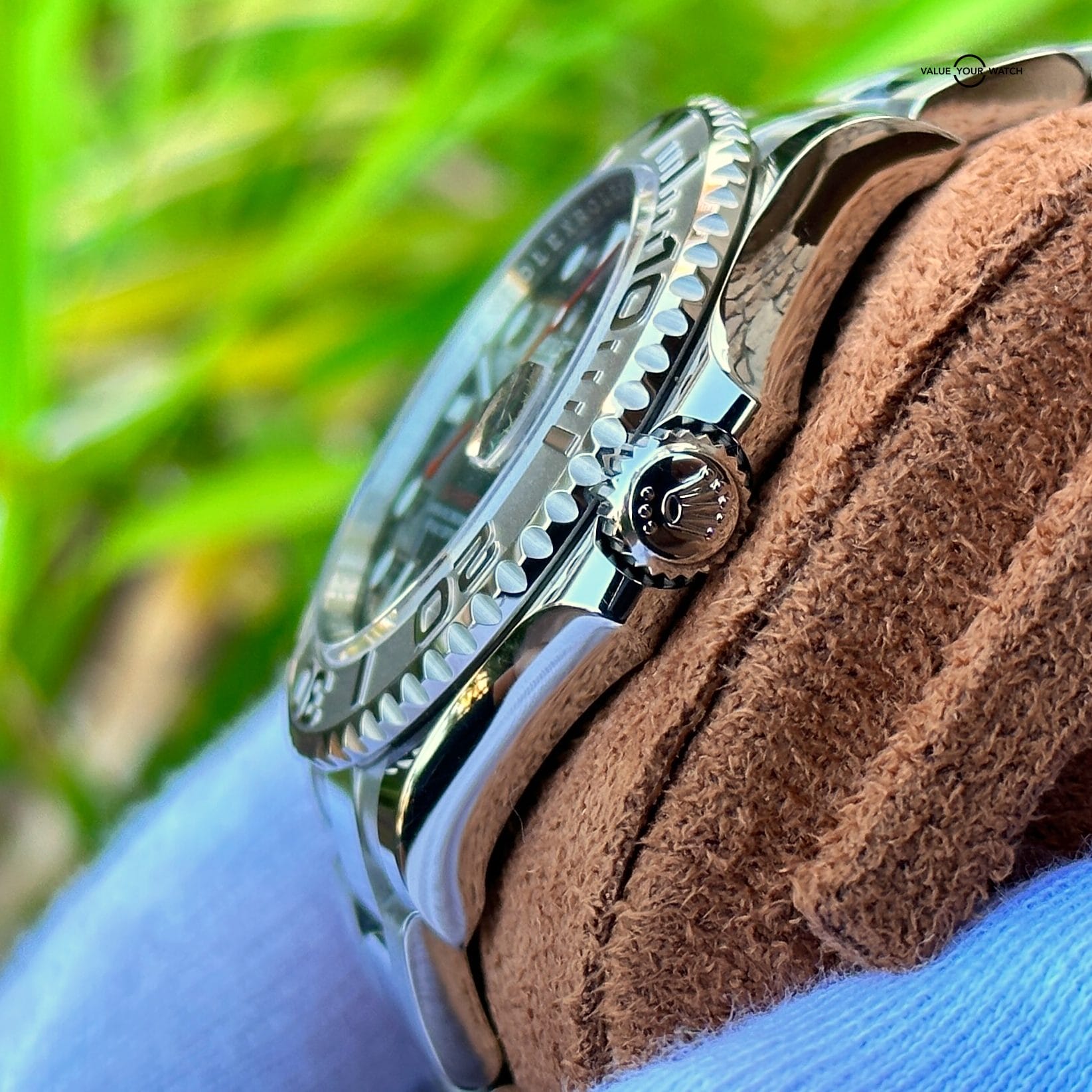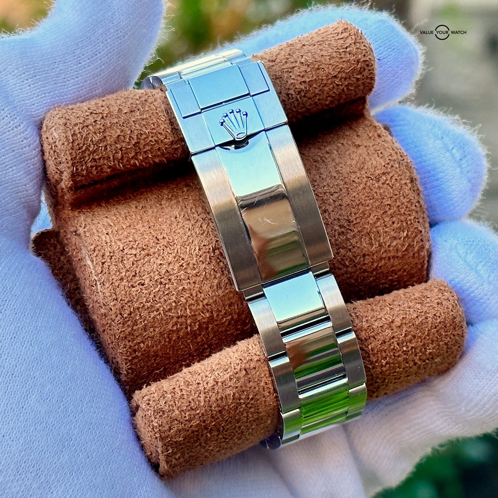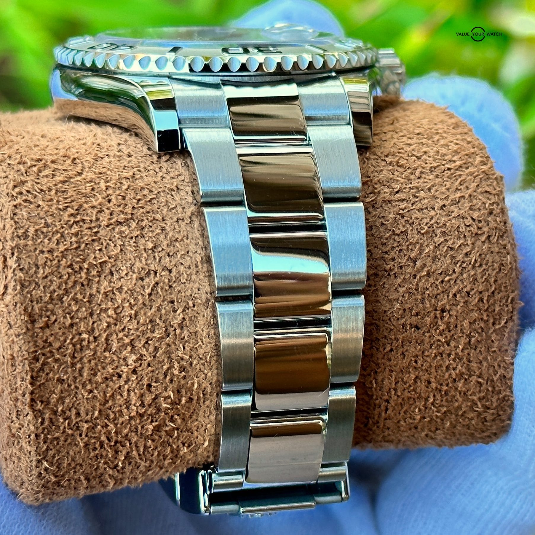 This Yacht-master 40 comes in a bright vibrant blue dial and simple shapes making it exceptionally legible. The bi-rotational functional bezel allows the user to track the sailing time between 2 buoys for sailing. The Oyster Bracelet is secured with a Oysterlock folding clasp and the Easylink comfort extension link to increase the bracelet length for added comfortability.