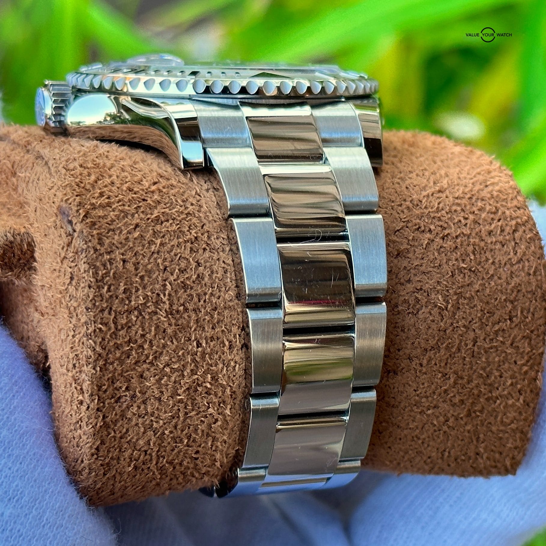 This watch is in fantastic overall pre-owned condition. Slight scratches on the clasp and bracelet has that can only be seen under harsh lighting (see photos). No scratches on the sapphire crystal and the case and bezel are in amazing condition.