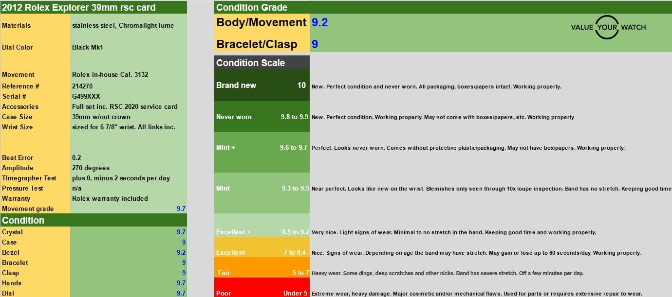 This fine example was produced in 2012 (MK1 dial) and comes as a full set with all tags, booklets and original Rolex warranty card included. Enjoy peace of mind for its operation as this Explorer was serviced by Rolex in 2020 (RSC card included) and covered under Rolex warranty until November 15 of 2022 making this the finest example 214270 (Mk1 dial) available on the market!