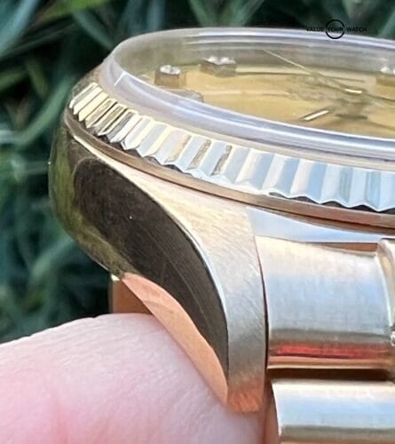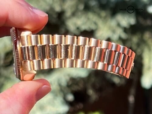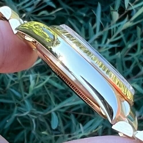 You will not find a better condition 18038 President unless it was new old stock. This watch has been meticulously taken care of. Sharp and thick lugs with crisp lines. Only the most faint hairlines can be found under close visual inspection. Looks mint to the passing eye. To complete this stunning example, is its original box, punched papers, both tags and booklet. Not to be outdone, this keeper was serviced in June of 2023.