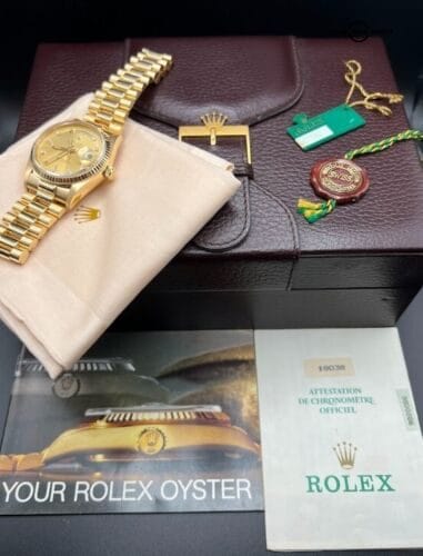 Specification: Serviced 1987 Rolex Day-Date President 18038 18k Solid Gold. FULL COLLECTOR SET