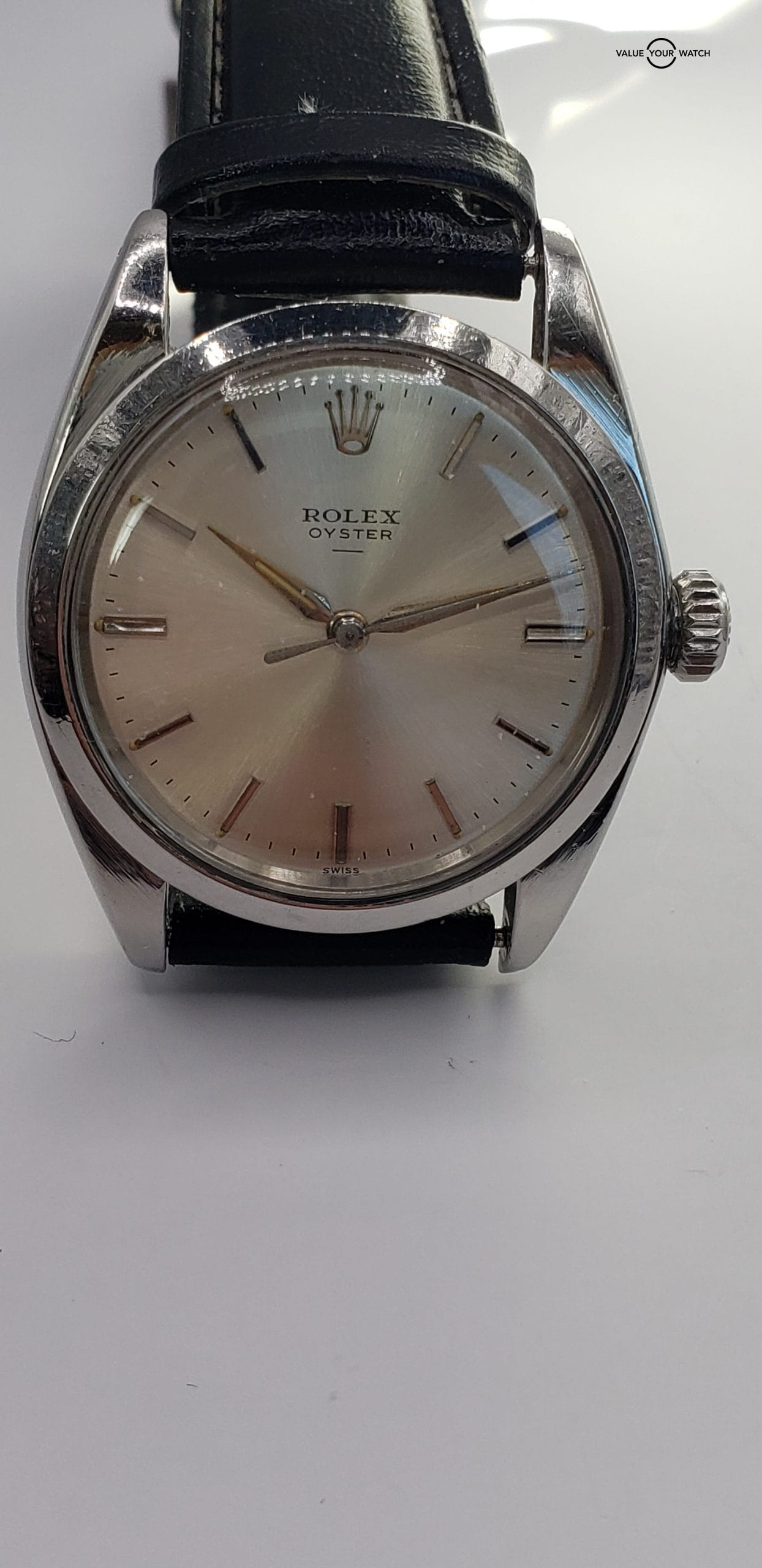 Here we have a 6436 Rolex Oyster, mechanical, manual wind. Stainless 33mm case.