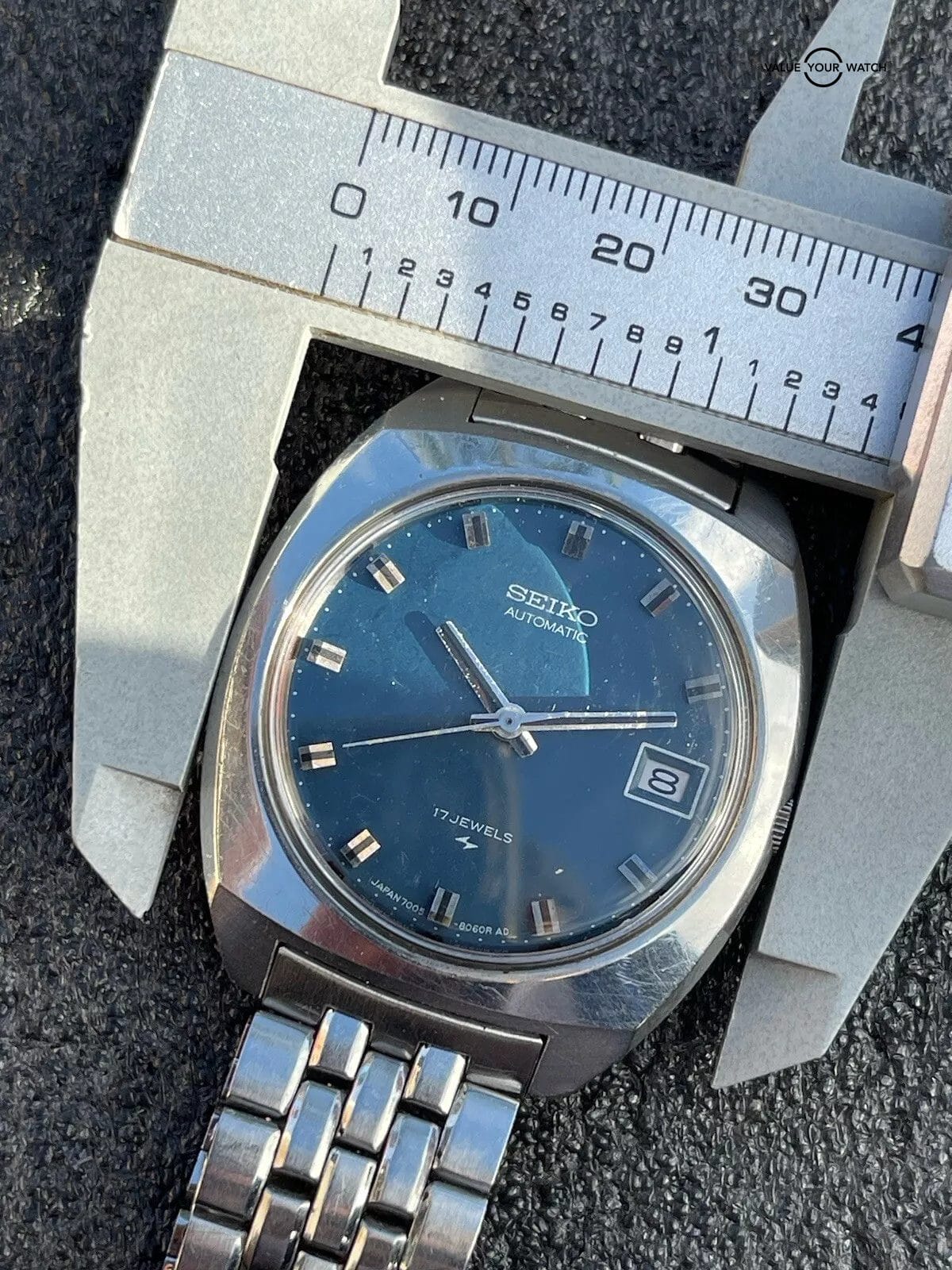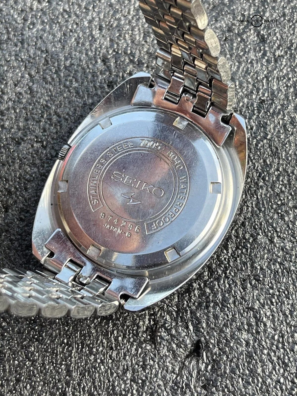 Original Seiko signed bracelet is used and shows signs of wear. It will fit up to 8 inch (20.3cm) wrist.