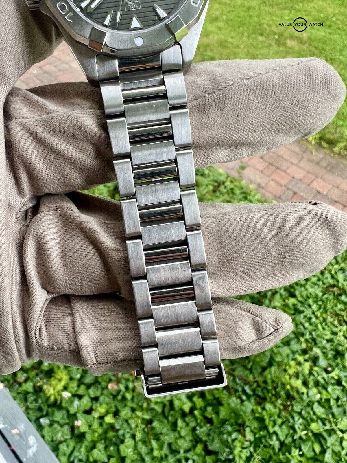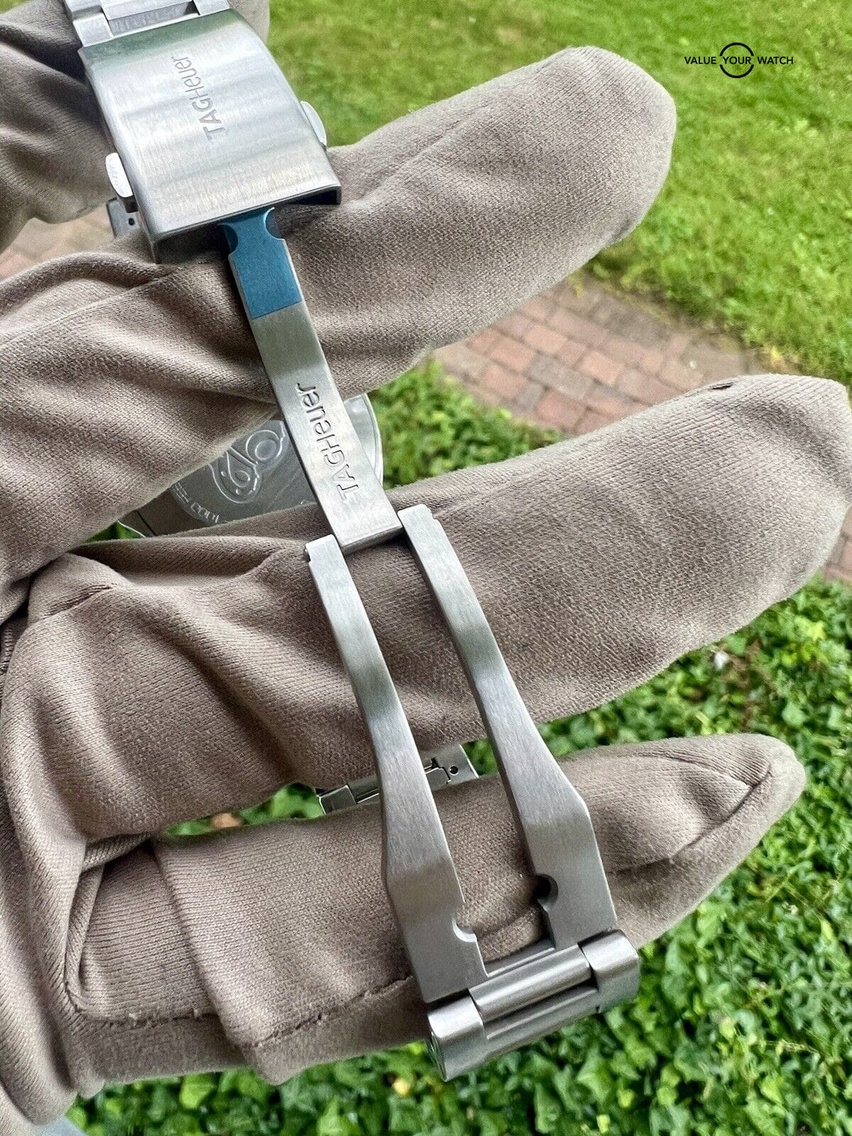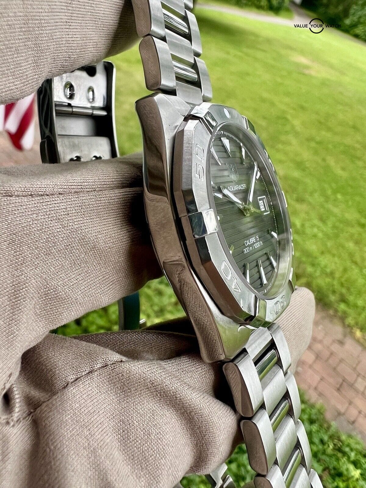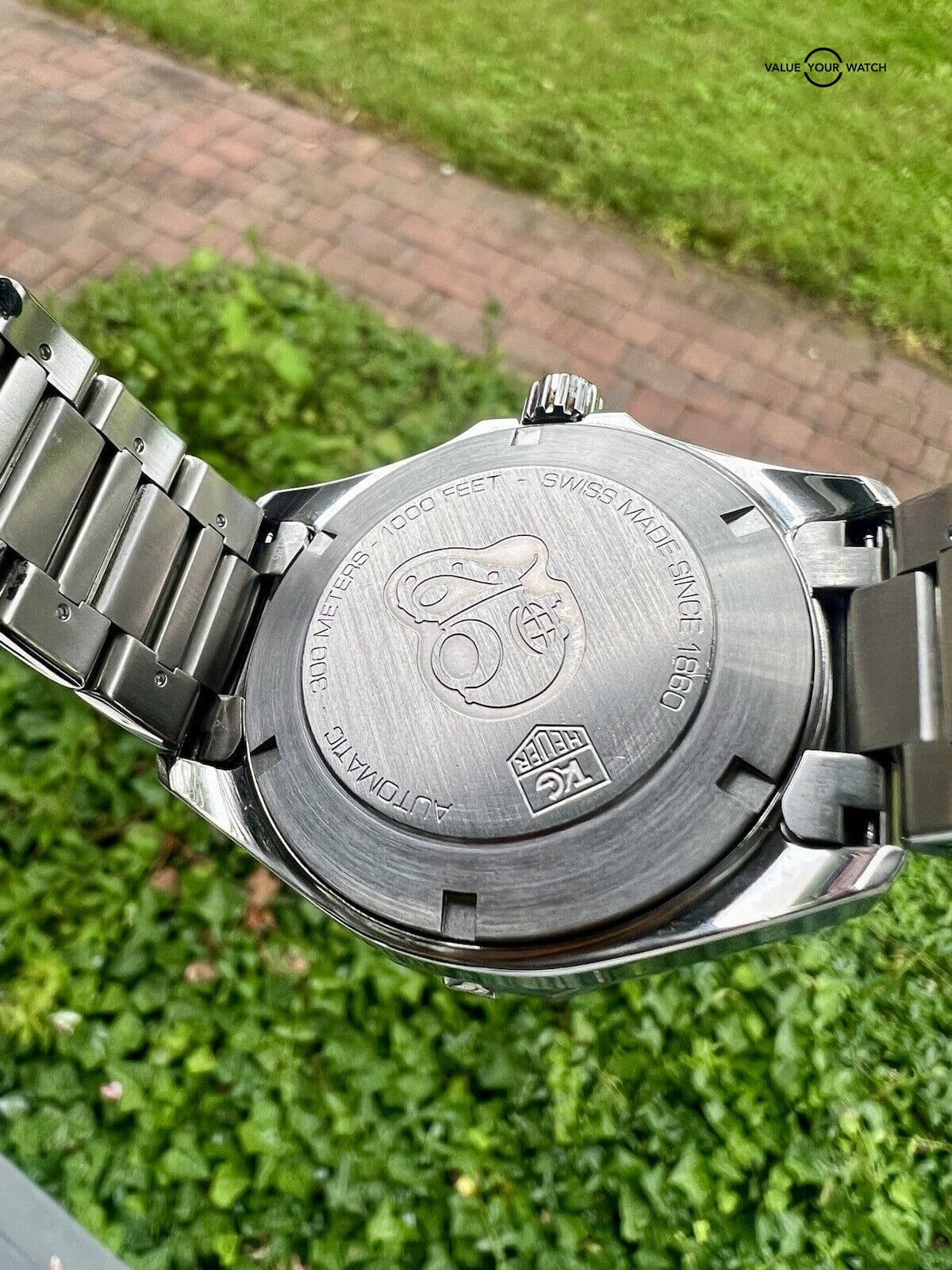 This watch is water-resistant up to 300 m (30 ATM), has luminous hands, a date indicator, diamond accent, sapphire crystal, and a rotating bezel. The watch comes with its original box and packaging and has features such as Swiss Made, mechanical automatic movement, and a solid caseback. This TAG Heuer Aquaracer is a perfect blend of style and functionality.