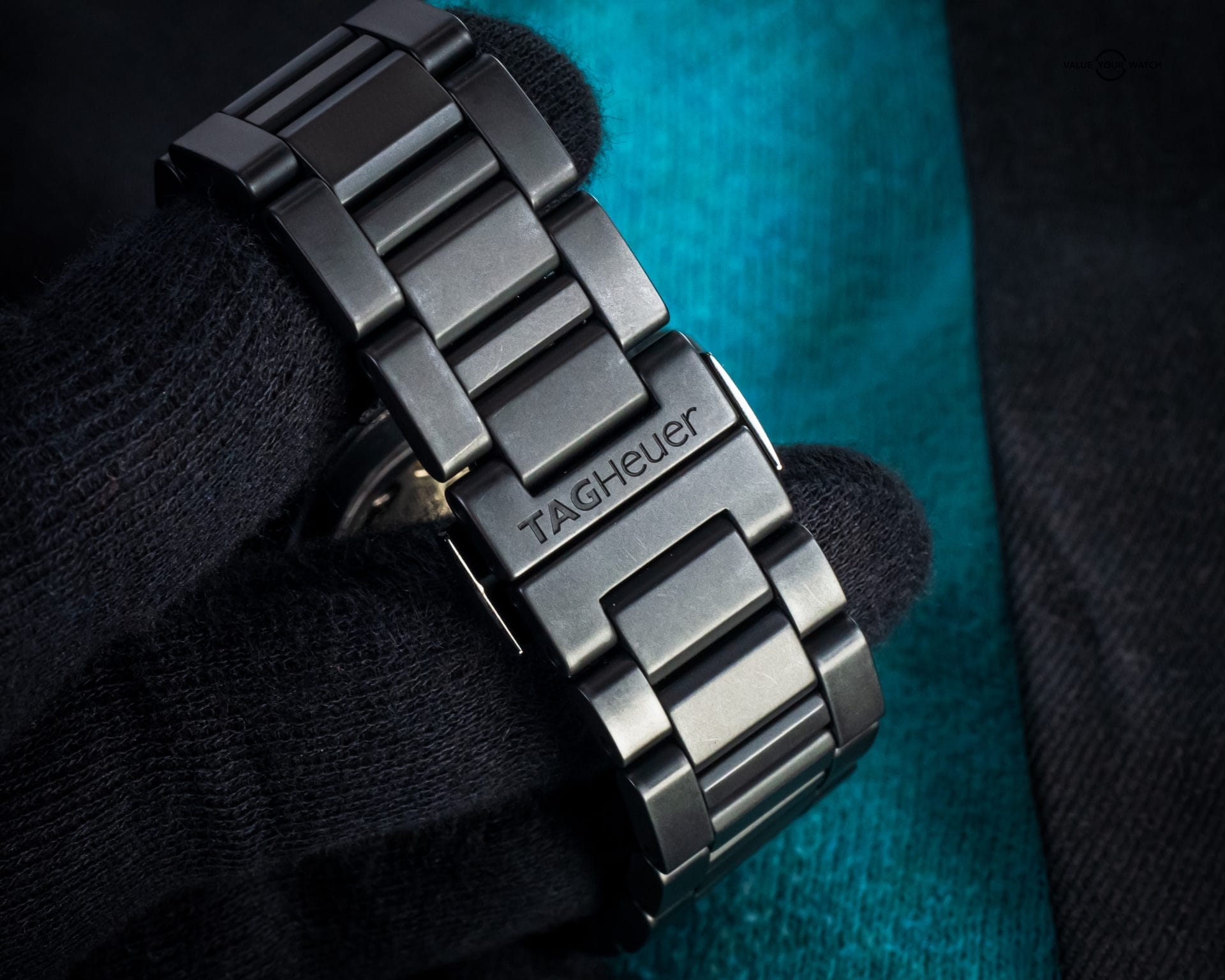 Discontinued, but timeless, the TAG Heuer Carrera Calibre Heuer 01 Ceramic Chronograph is more than just a watch: it’s a statement. This sleek and sophisticated timepiece boasts a full black on black designed ceramic case, renowned for its lightweight, scratch-resistant properties, and a matching ceramic bracelet for an unmatched monochromatic elegance. Beneath the sapphire crystal lies a skeletonized dial, showcasing the intricate workings of the powerful Calibre Heuer 01 automatic chronograph movement with a 50-hour power reserve. This timepiece isn’t just a watch; it’s a conversation starter, a symbol of success, and a timeless companion for the discerning individual.