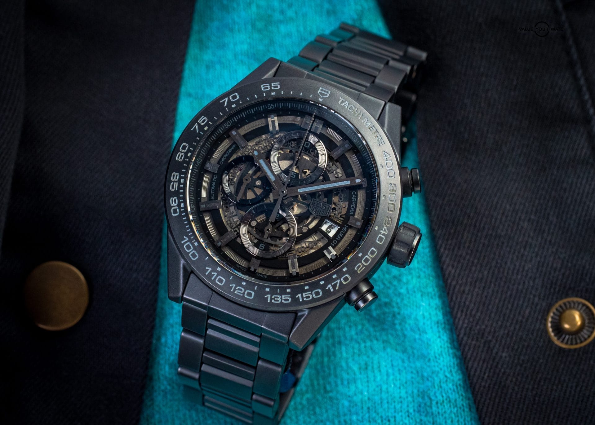 TAG Heuer Carrera Calibre 01 Black Ceramic Skeleton Dial 45mm – BOX & PAPERS – CAR2A91.BH0742