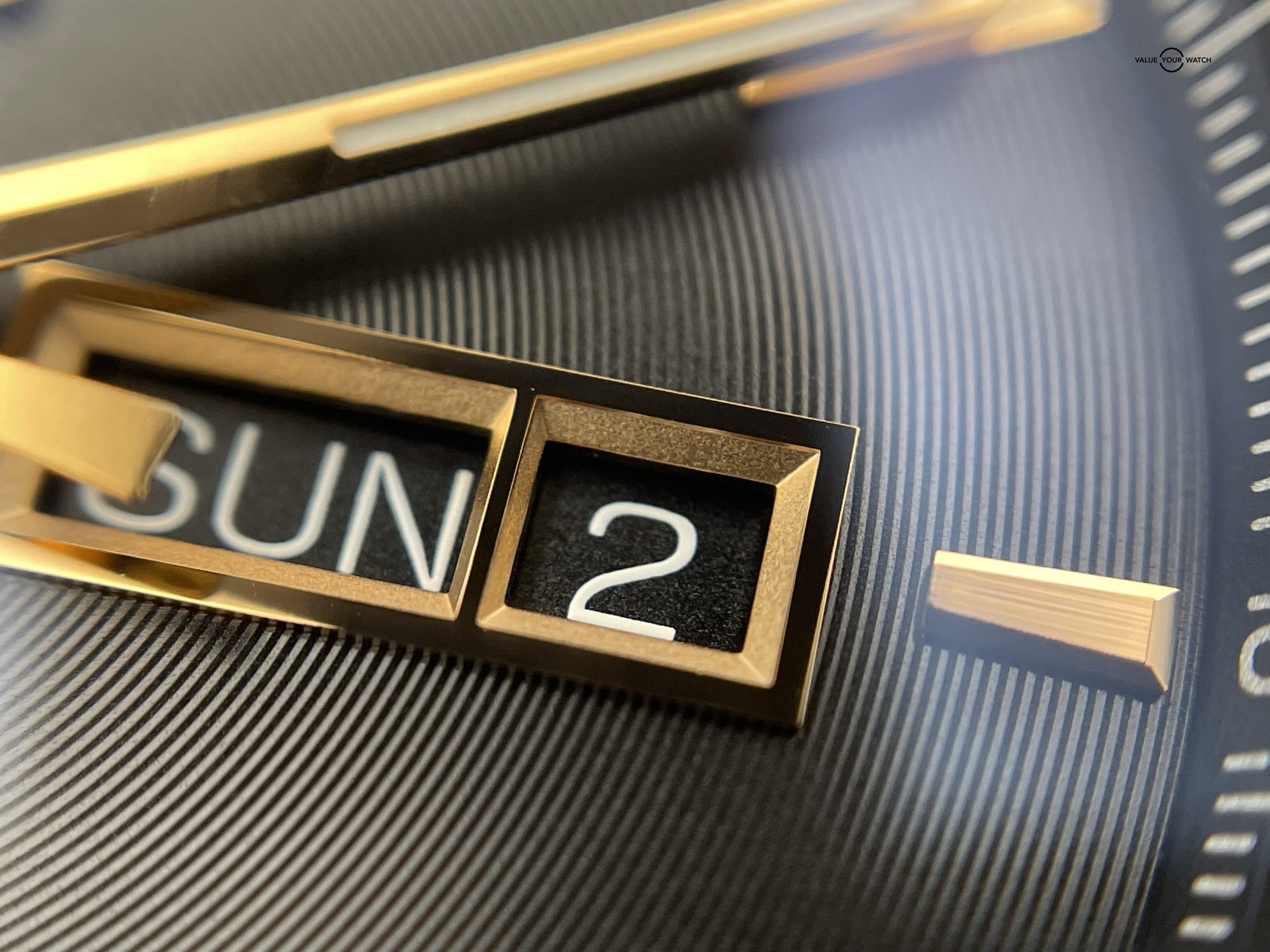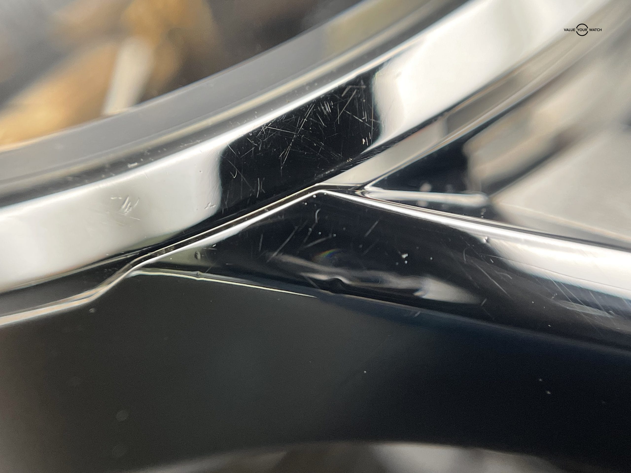 The watch and buckle has been professionally polished however a small dent remains above the bezel (shown in the photos) which is difficult to spot. Another deeper scratch can be seen on the caseback.