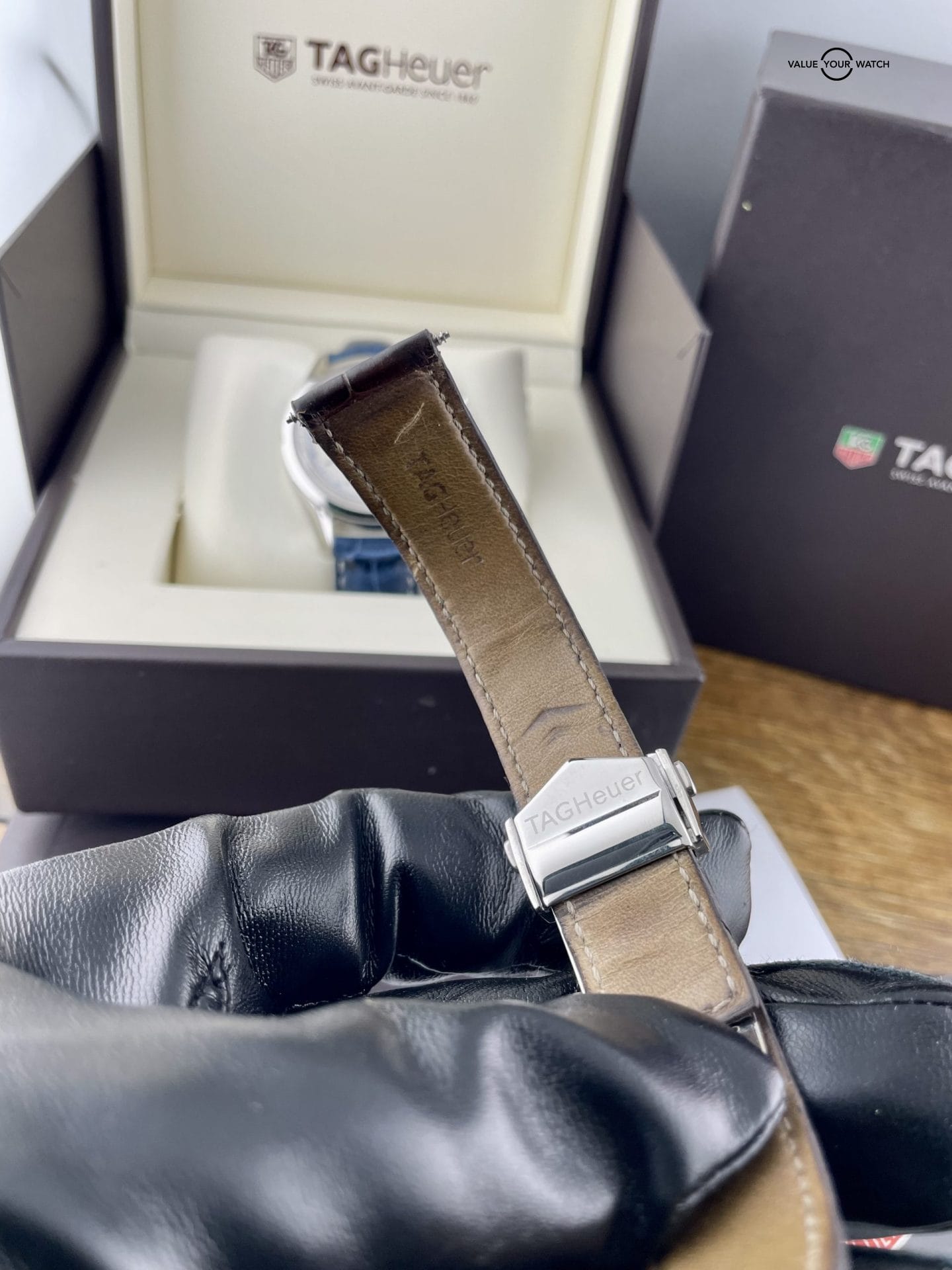 Strap – Original Tag Heuer Brown leather and aftermarket blue leather