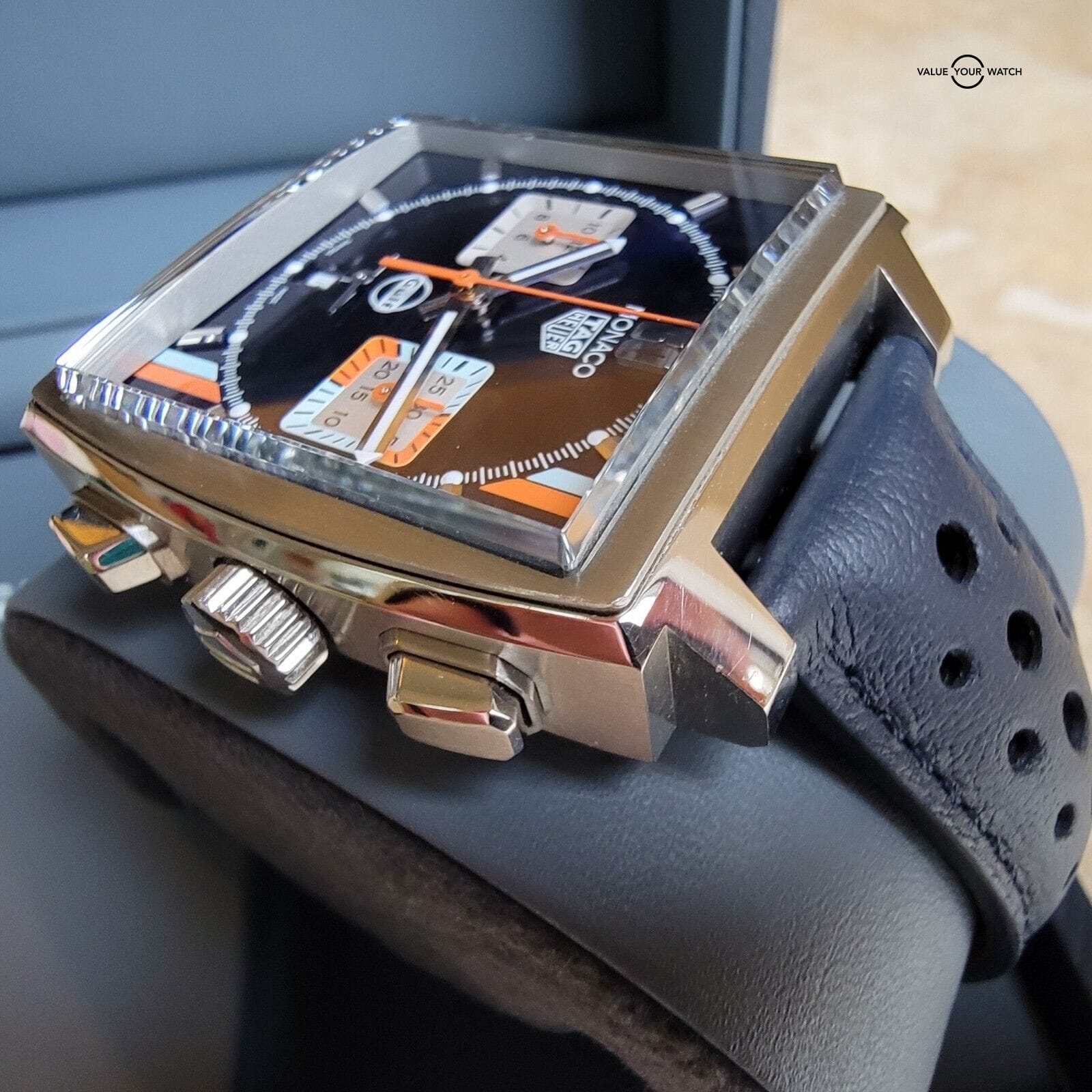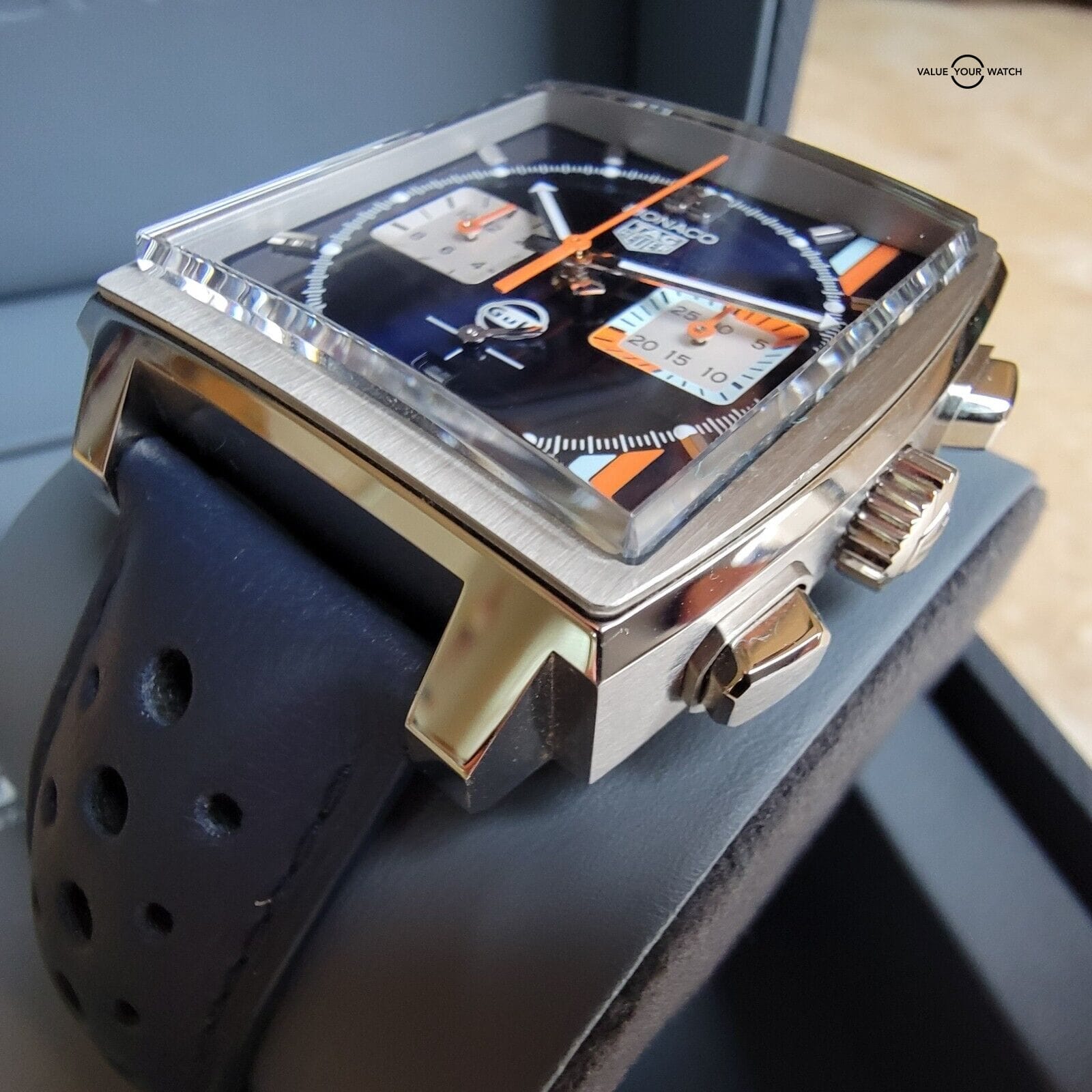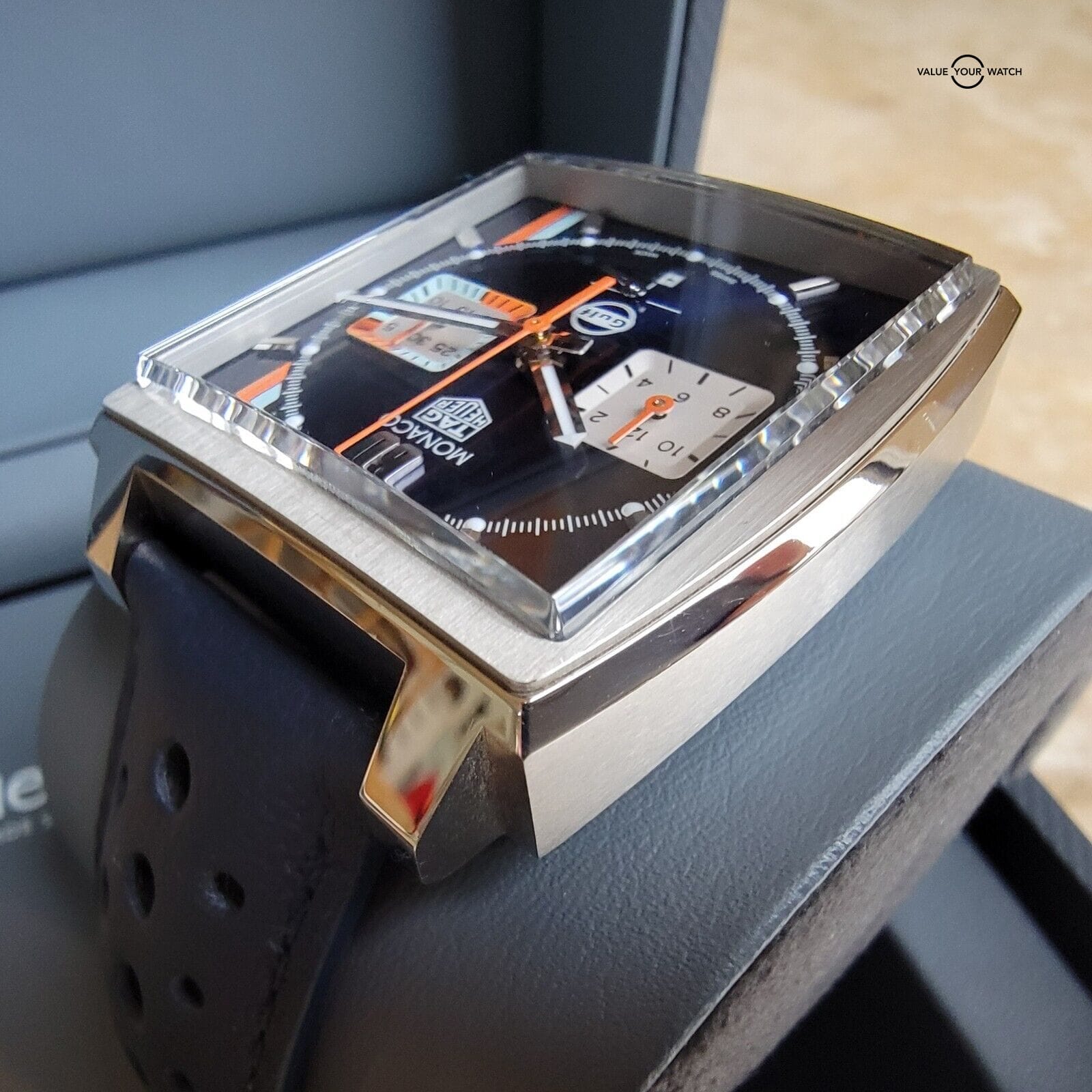 Up for sale here is the newest version of Gulf Monaco, presenting a more subdued look with smaller stripes and a beautiful sunburst blue dial.