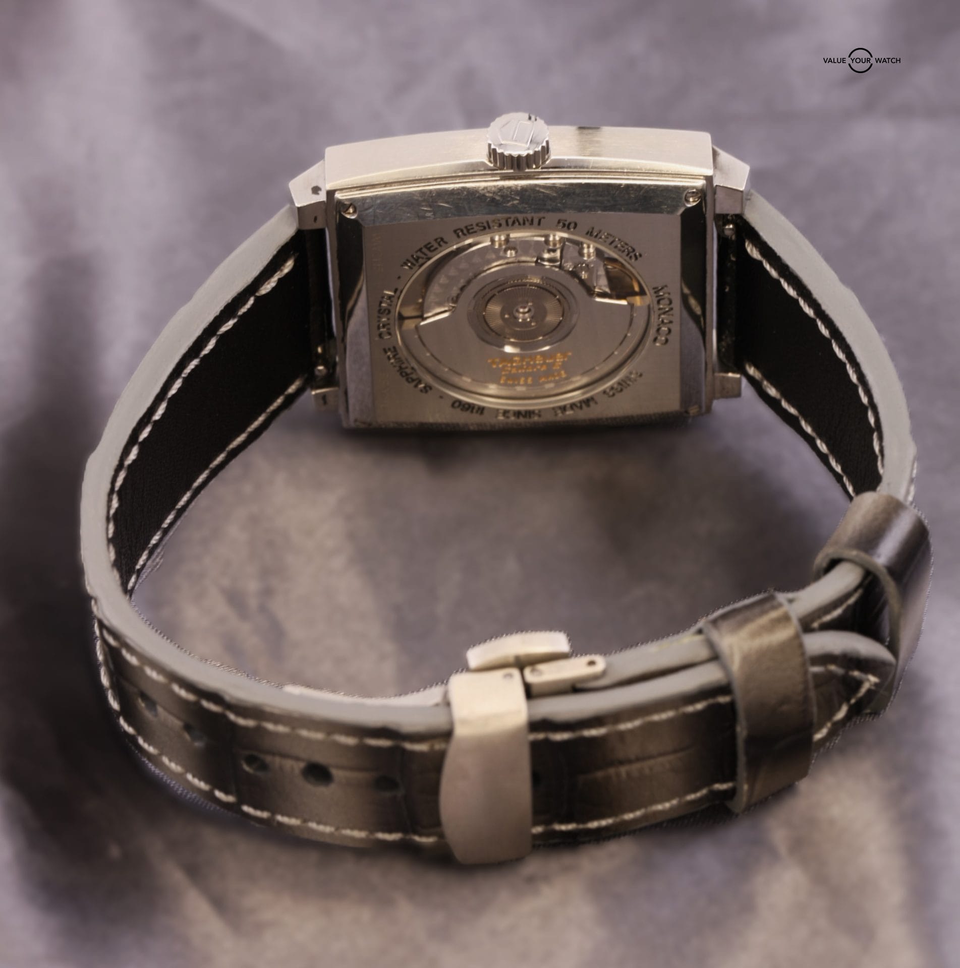 Presented for your consideration is this Fantastic Bronze dialed Monaco with a brown python strap. This great timepiece features a silver-tone stainless steel case. The dial has ‘’I” style index silver and white hour markers that look amazing with the silver-tone Luminescent hands. It is a great everyday timepiece that can be dressed up or down depending on the occasion.