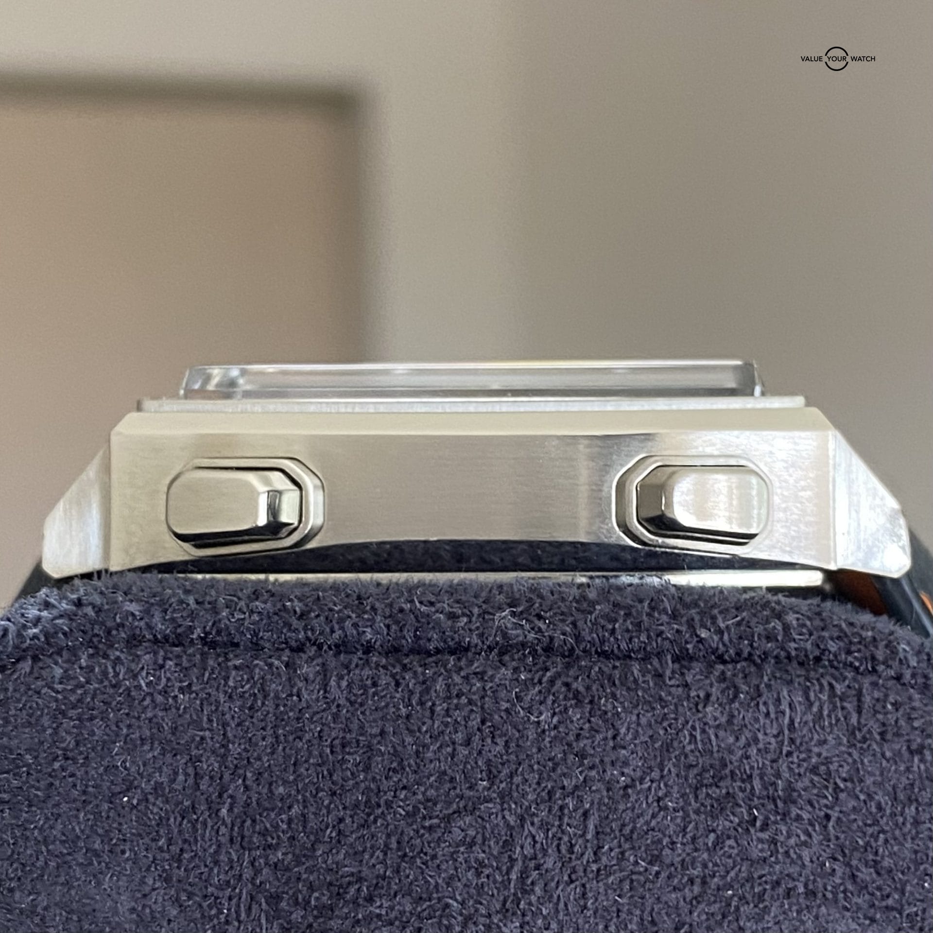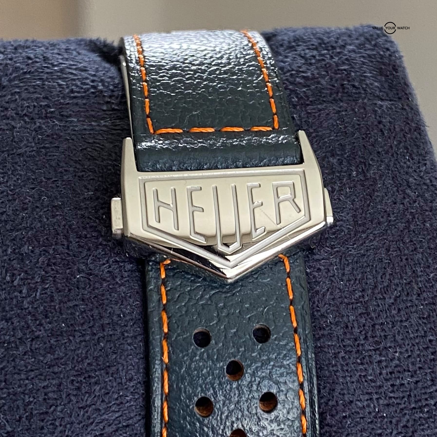 Tag Heuer and Gulf Oil have crossed paths several times. Most notably in 1971, in the film Le Mans, when Steve McQueen wore a Heuer Monaco on his wrist while driving a Porsche 917 carrying the famous blue and orange colors.