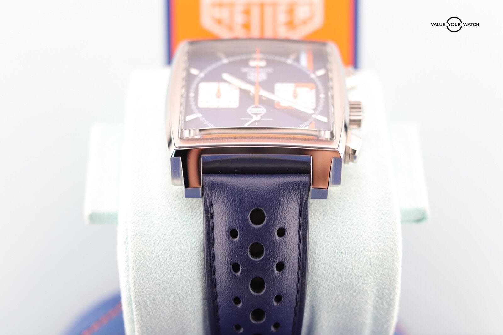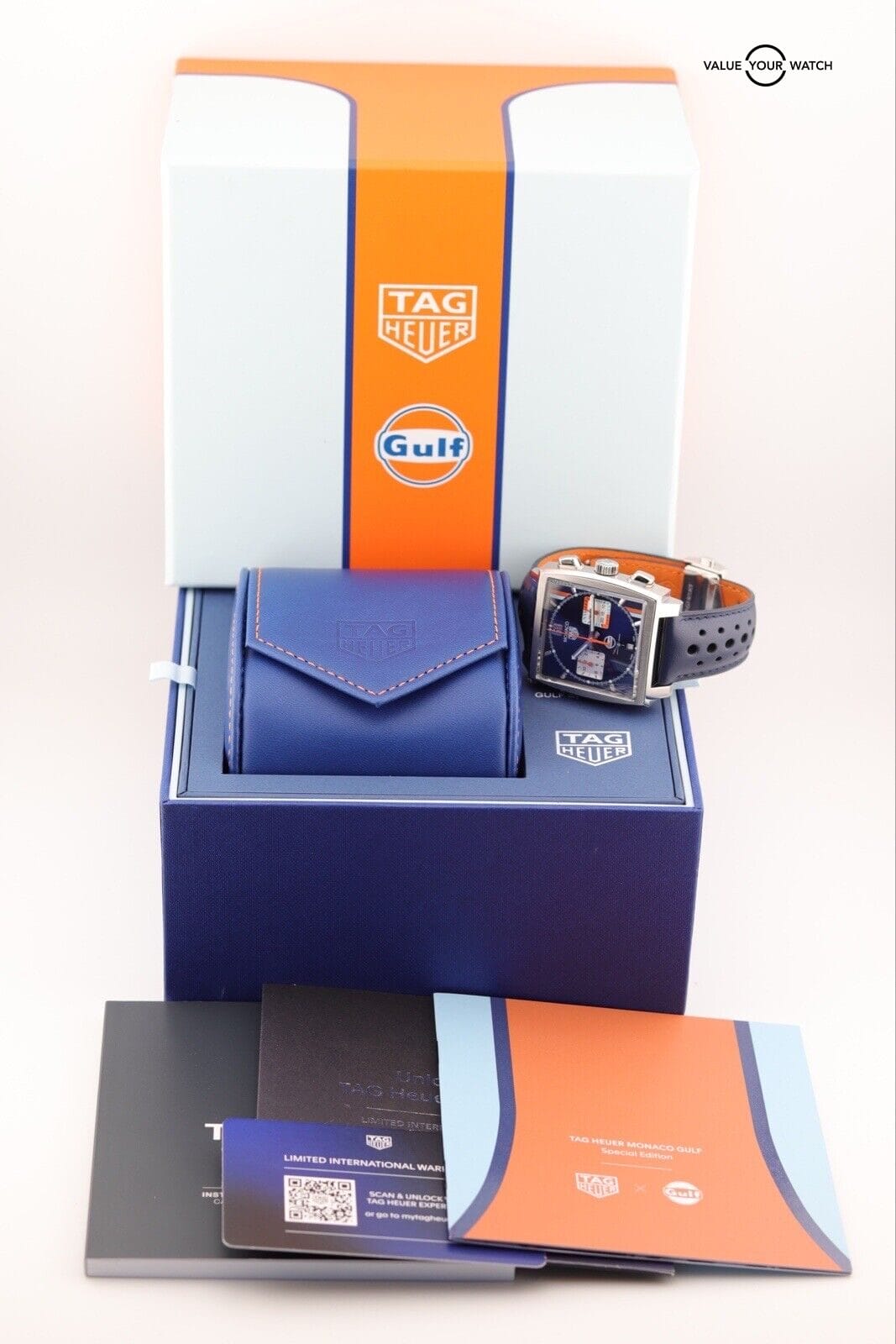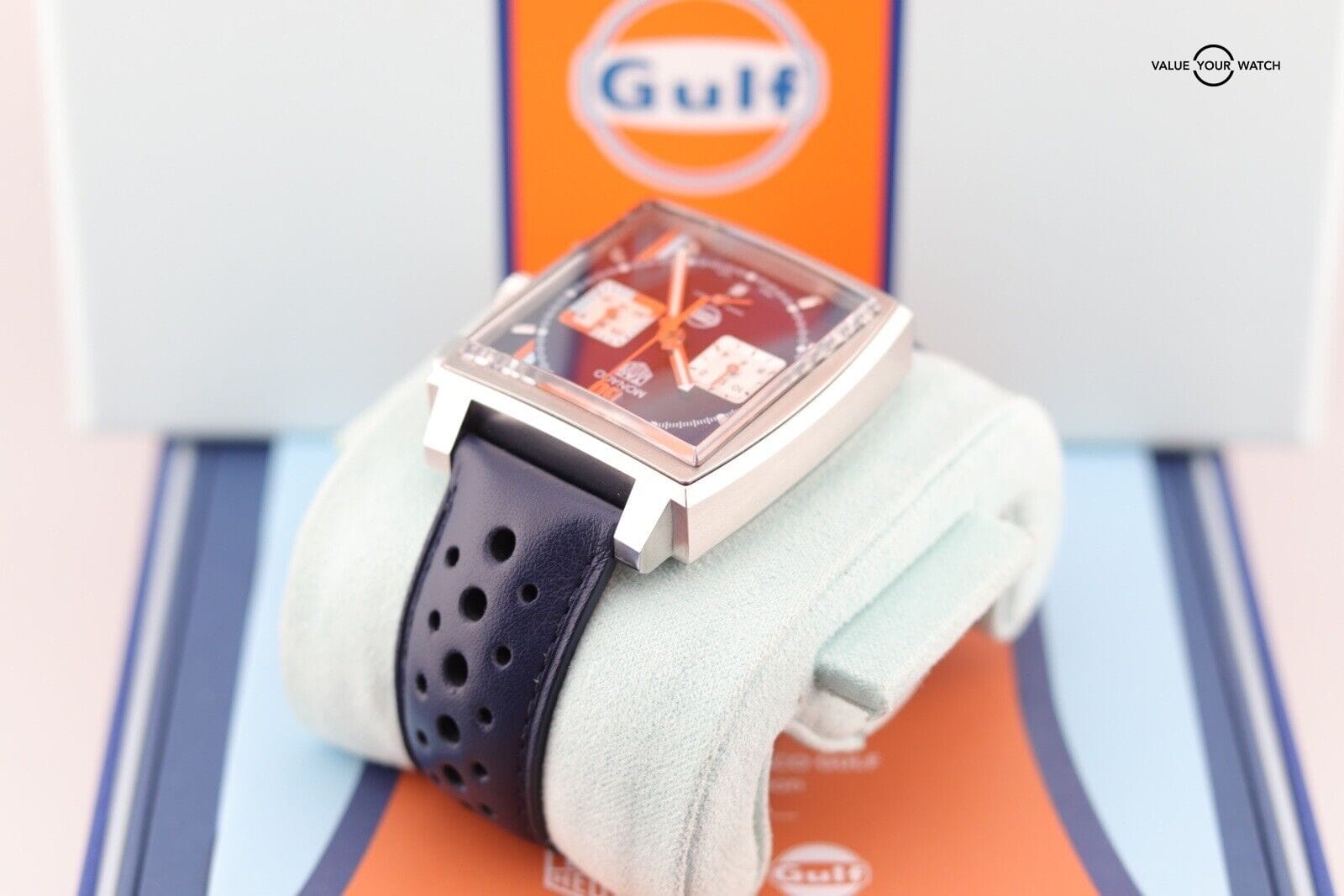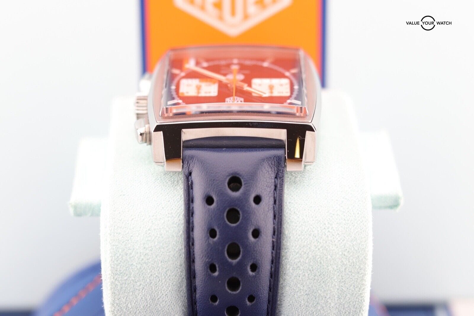 Authenticity Verification: When purchasing a Tag Heuer Monaco Calibre 02 Gulf Edition CBL2111 online, ensure the seller provides detailed images and a complete description. Verify the watch’s authenticity by checking serial numbers and enlisting expert assistance if needed.