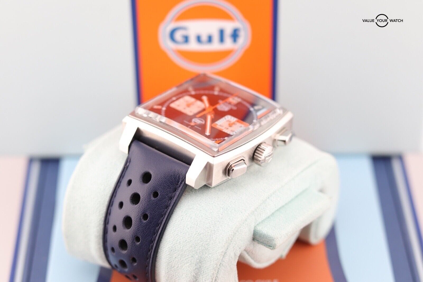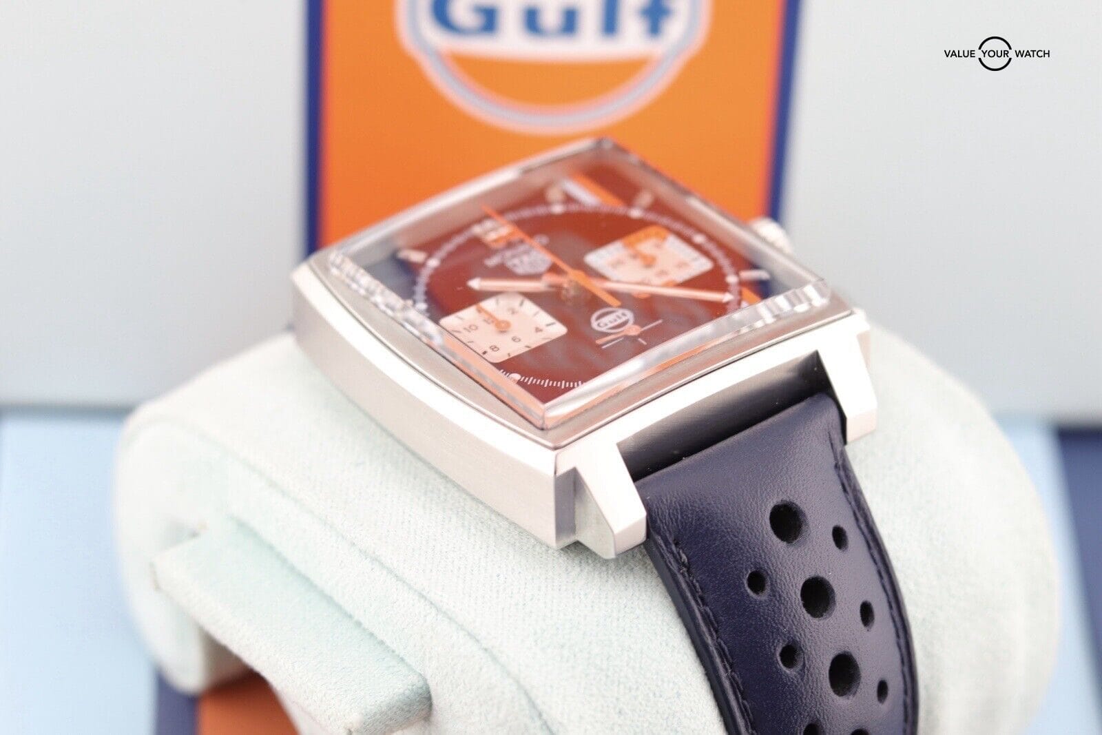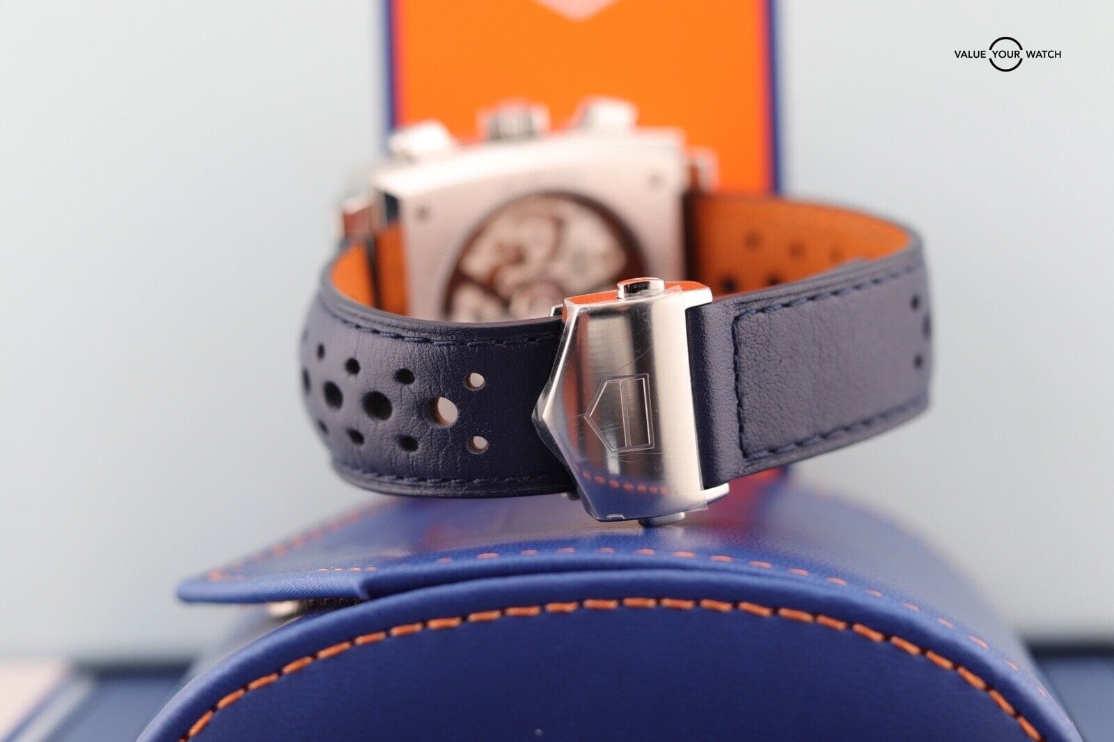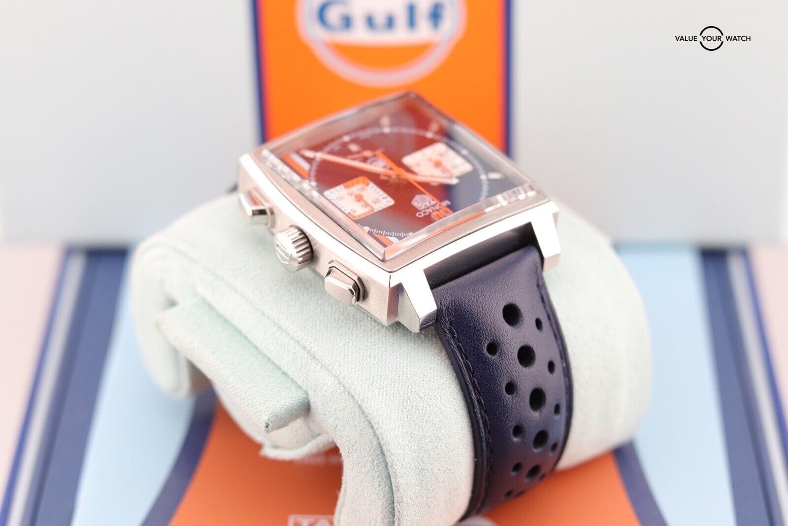 Authenticity Verification: When purchasing a Tag Heuer Monaco Calibre 02 Gulf Edition CBL2111 online, ensure the seller provides detailed images and a complete description. Verify the watch’s authenticity by checking serial numbers and enlisting expert assistance if needed.