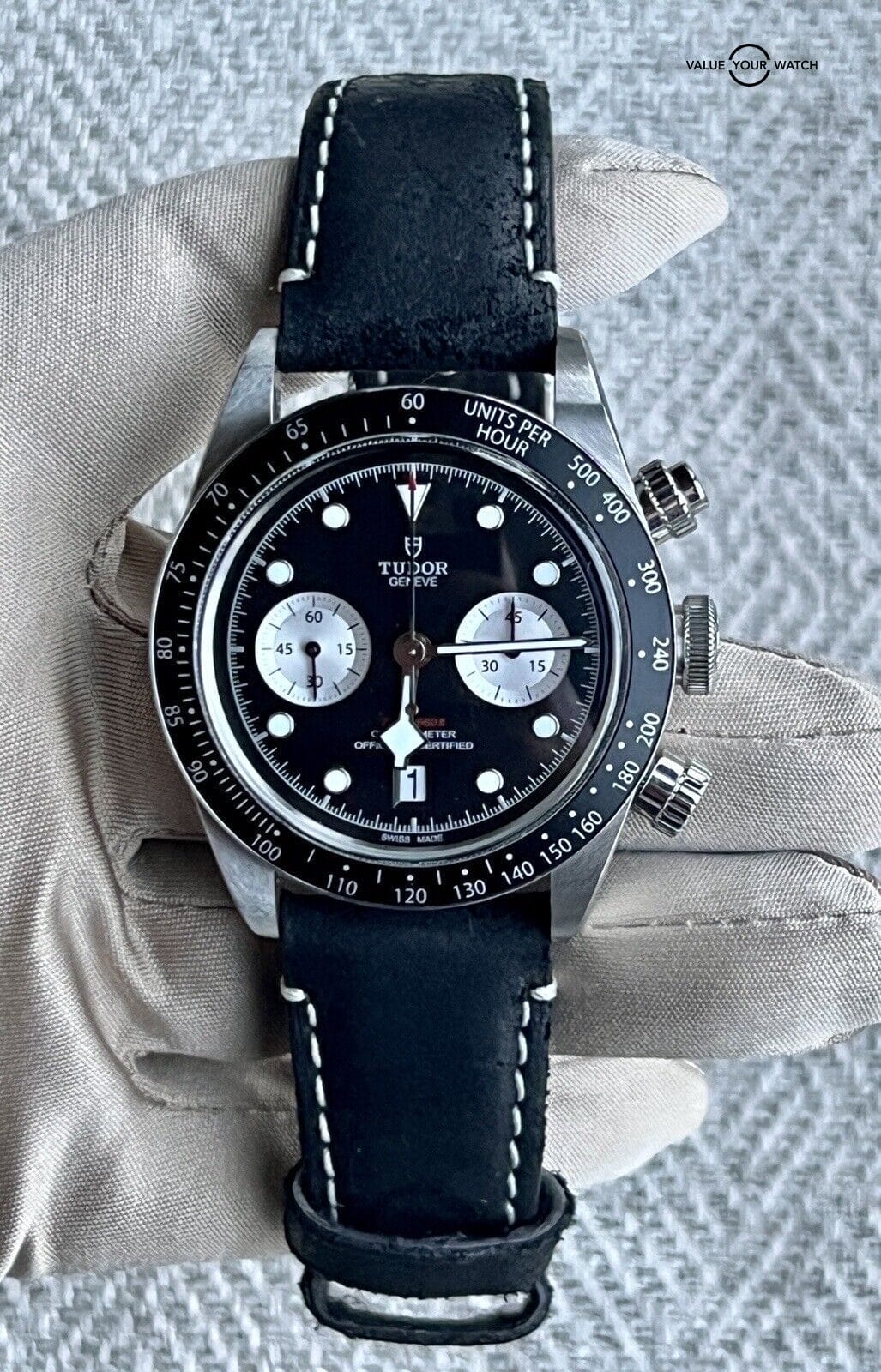 2023 Tudor Black Bay Chronograph Leather Strap Complete Set 79360N Reverse Panda