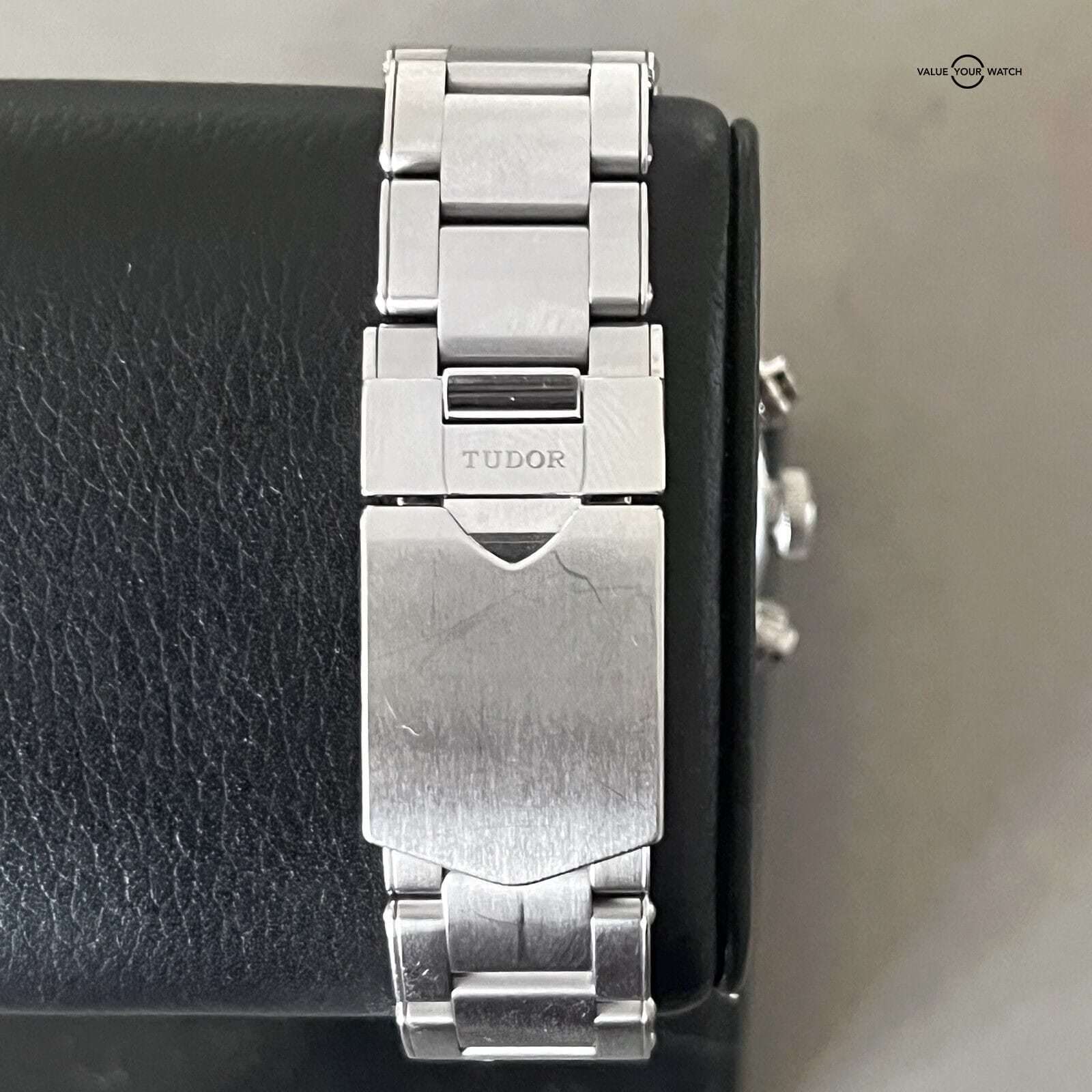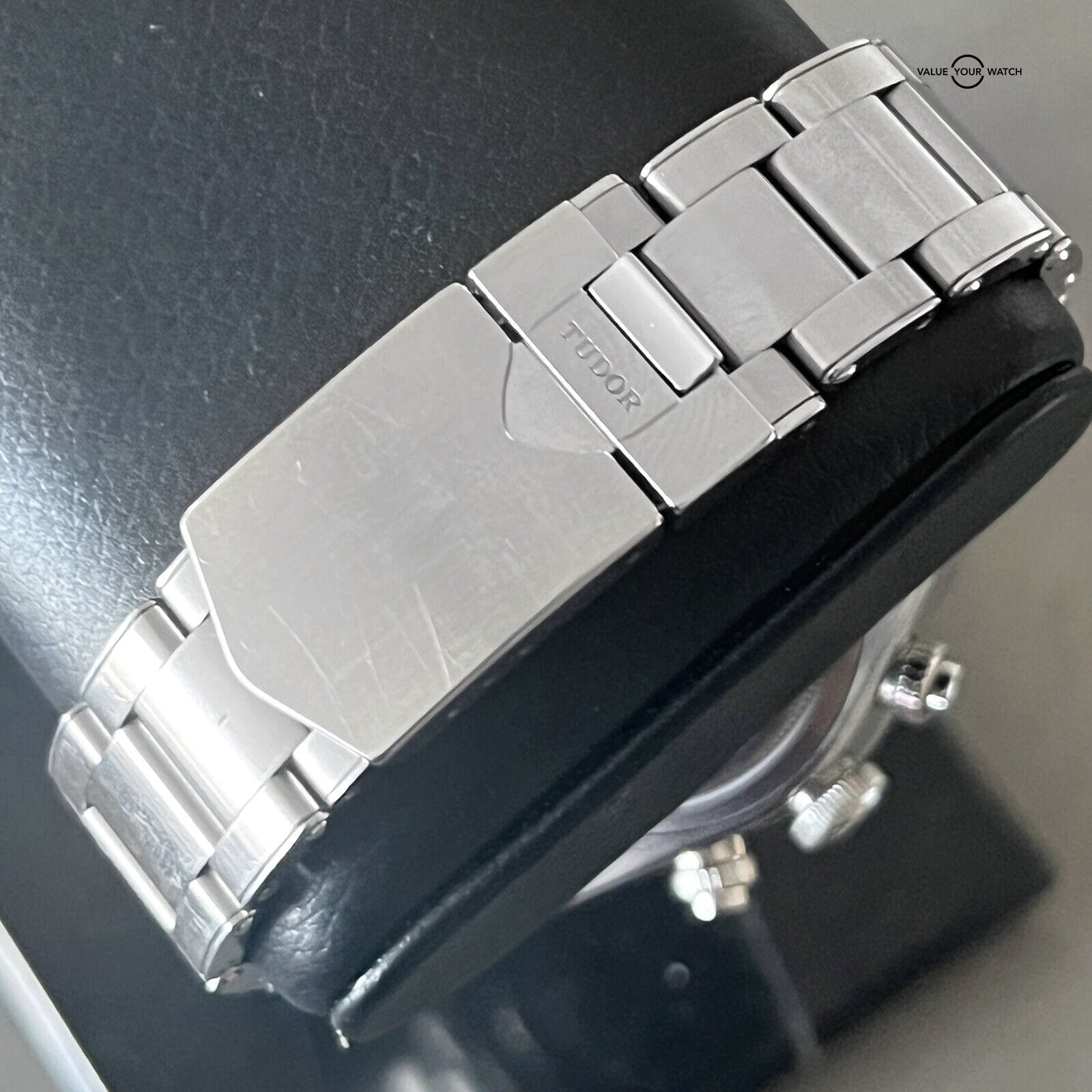 This stunning Tudor Black Bay Chrono wristwatch is a must-have for any discerning collector. Crafted from high-quality stainless steel, this watch features a fixed bezel, solid caseback, and deployment clasp for added security. The opaline with black display is accented by a power reserve indicator, small second, and chronograph, making it a practical and stylish choice for any occasion.
