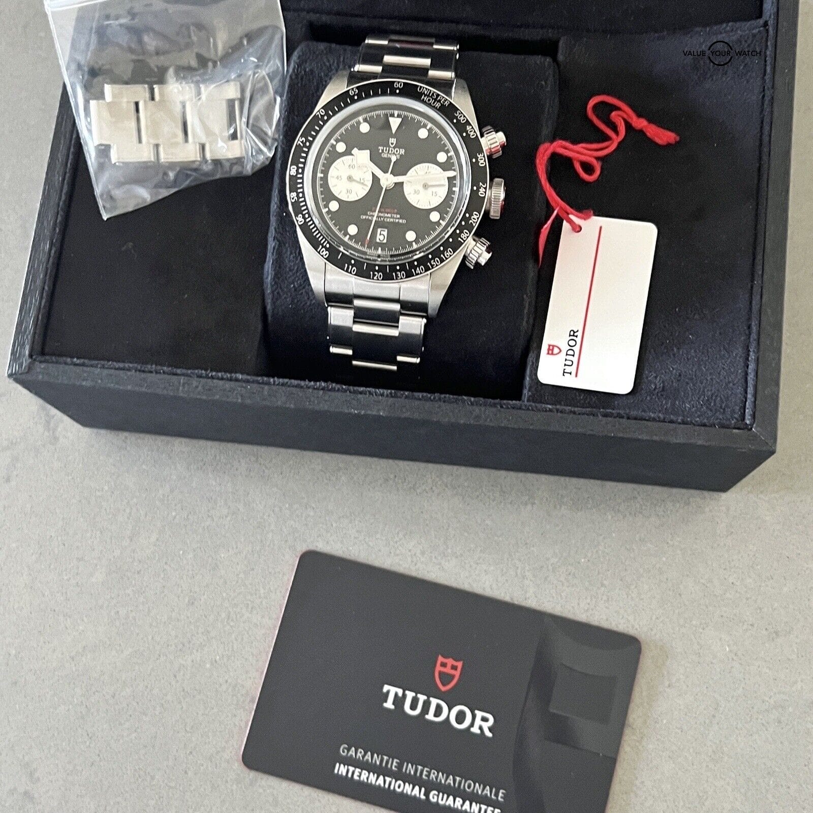 The watch comes with its original box and packaging, manual/booklet, and papers. It has a lug width of 22mm and is water-resistant up to 20m (2 ATM). The watch was manufactured in 2023 and has a manufacturer warranty of 4 years. The Tudor Black Bay Chronograph 41mm wristwatch is an excellent addition to any watch collection and is suitable for any occasion.