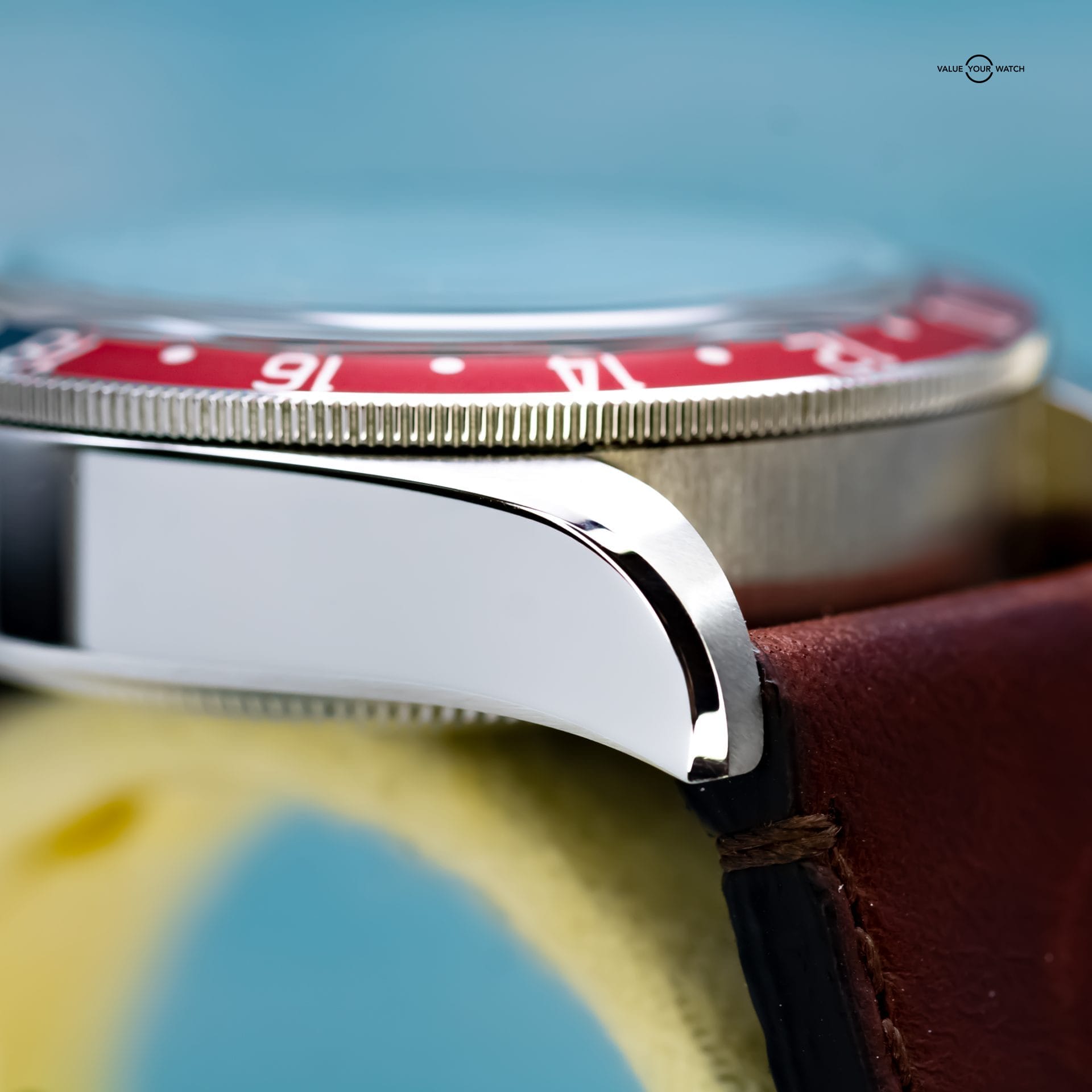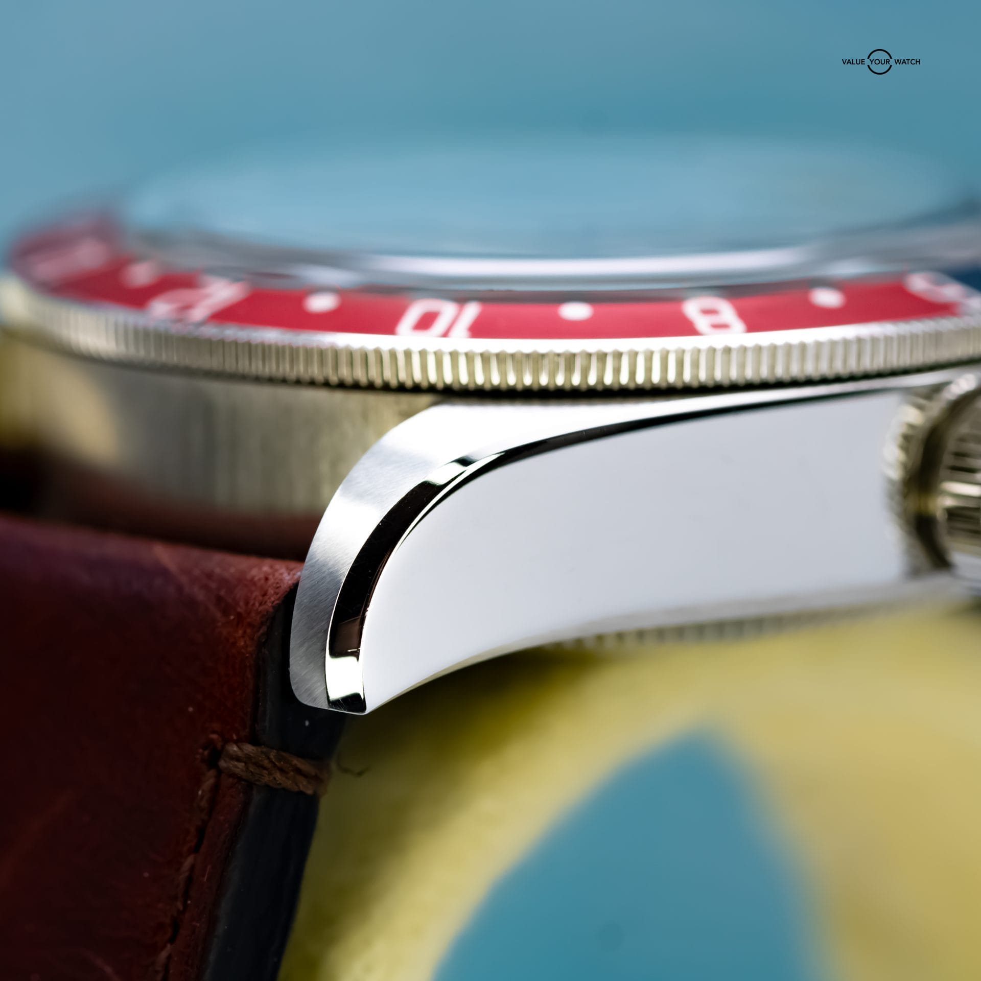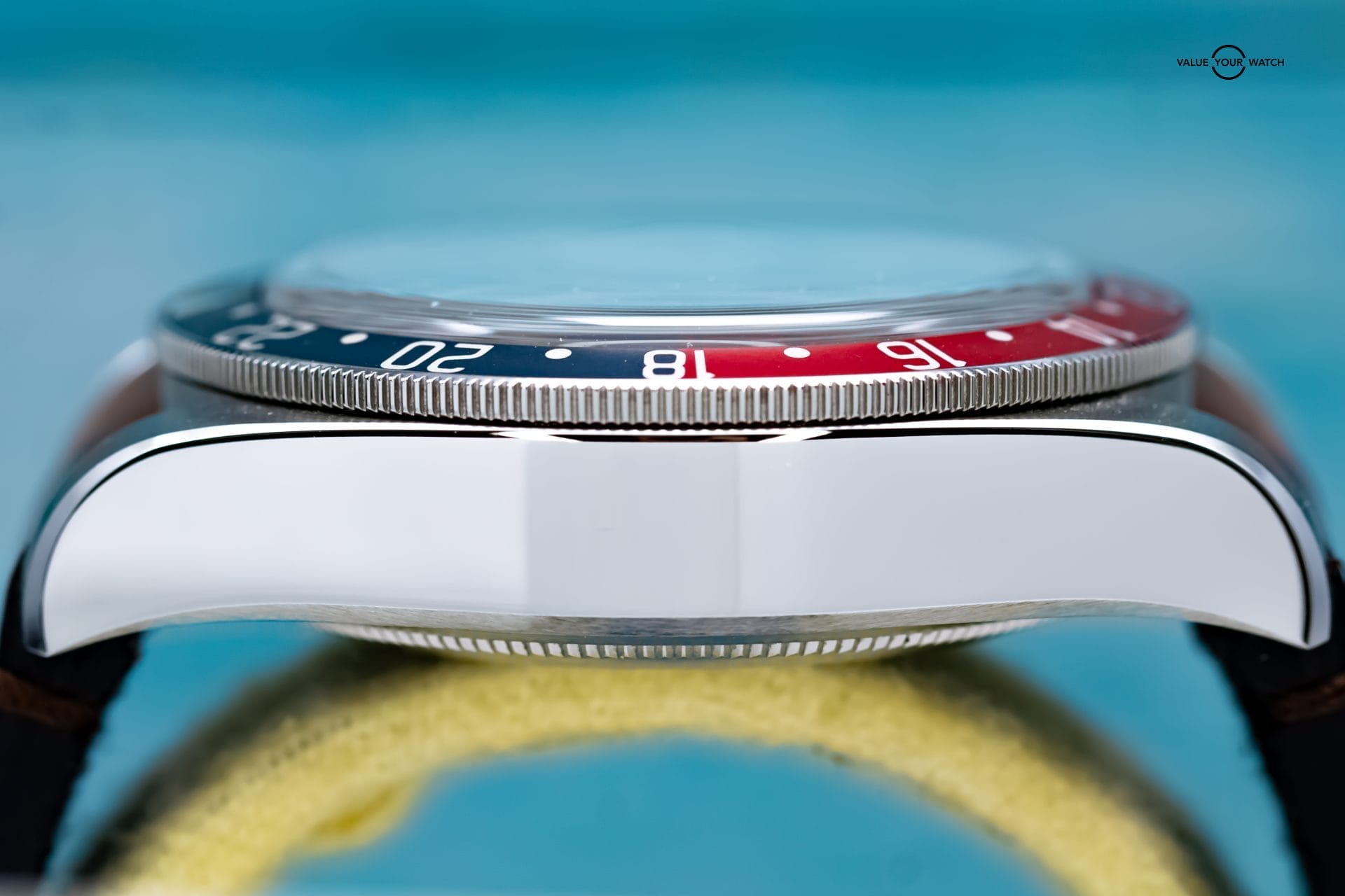 This Tudor Pepsi sits at 41mm and will comfortably fit up to a 7.75″ wrist