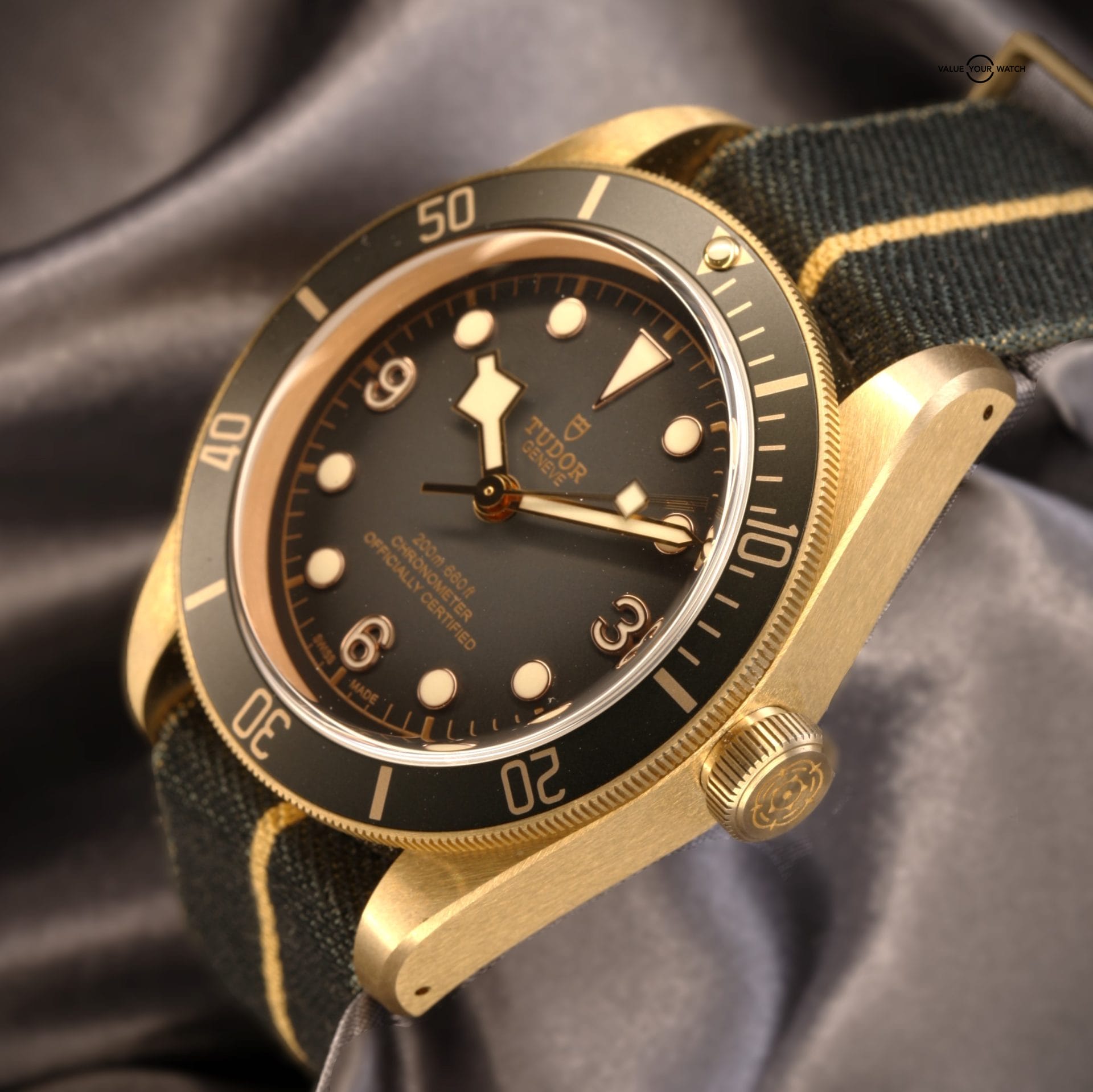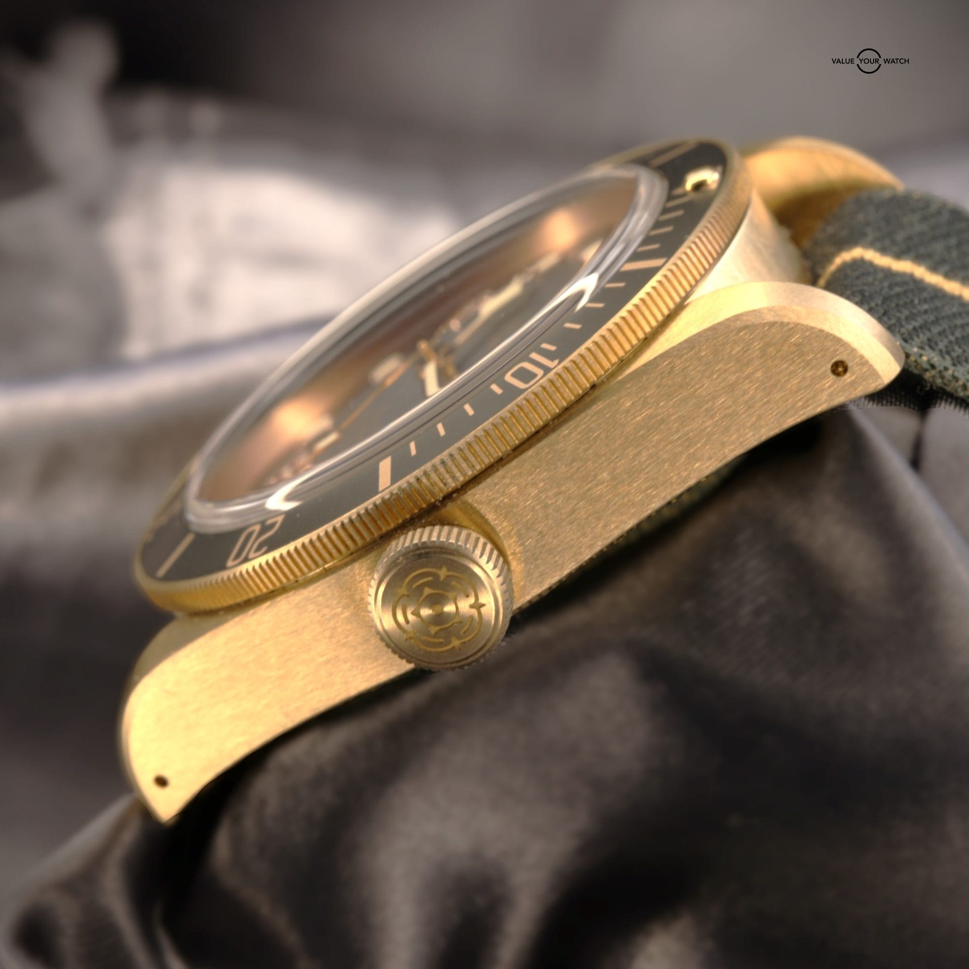 Presented for your consideration is the Black Bay Bronze. This timepiece, with its 43mm vintage-inspired oyster case and bold size, features a slate gray dial adorned with golden hour markers. The striking contrast between the markers and the background enhances visibility, creating a crisp look. Powered by the brand’s MT5601 movement and boasting a 70-hour power reserve, this watch is perfect for everyday wear.