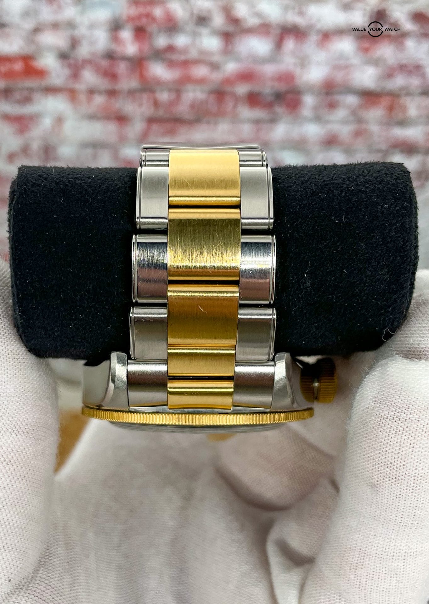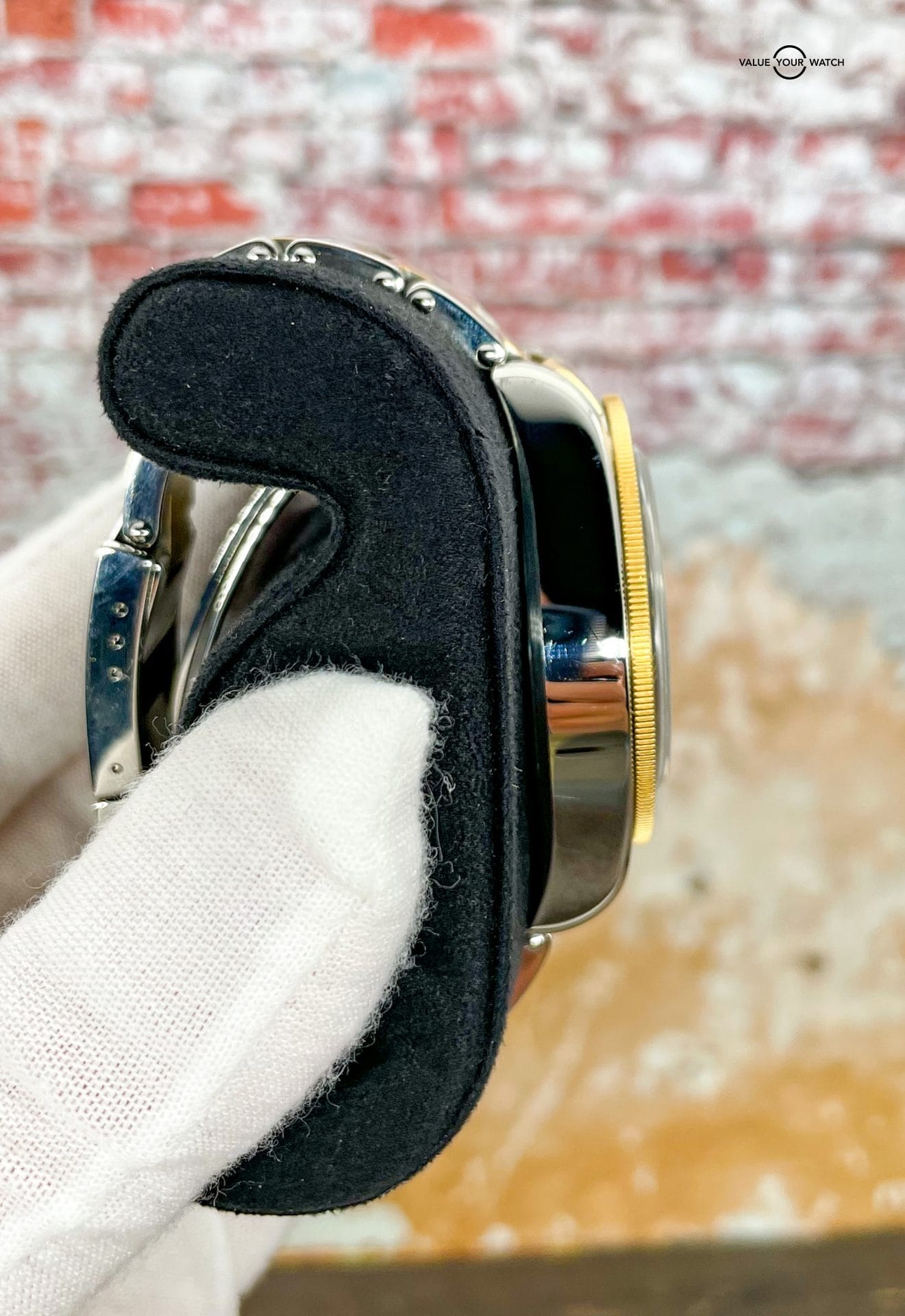 This piece is in very good 2nd hand condition with no noticeable markings on the crystal or bezel. The casing itself does have some hairlines through the polished sections, but is free of anything I would consider major markings. The case back of the watch is very clean, but the bracelet and the clasp show signs of use with hairlines throughout, but nothing significant or unexpected. Overall, the watch shows signs of use, but is in overall very good condition. Please review all photos carefully for condition and contact us with any questions. Additional images can be provided on request.