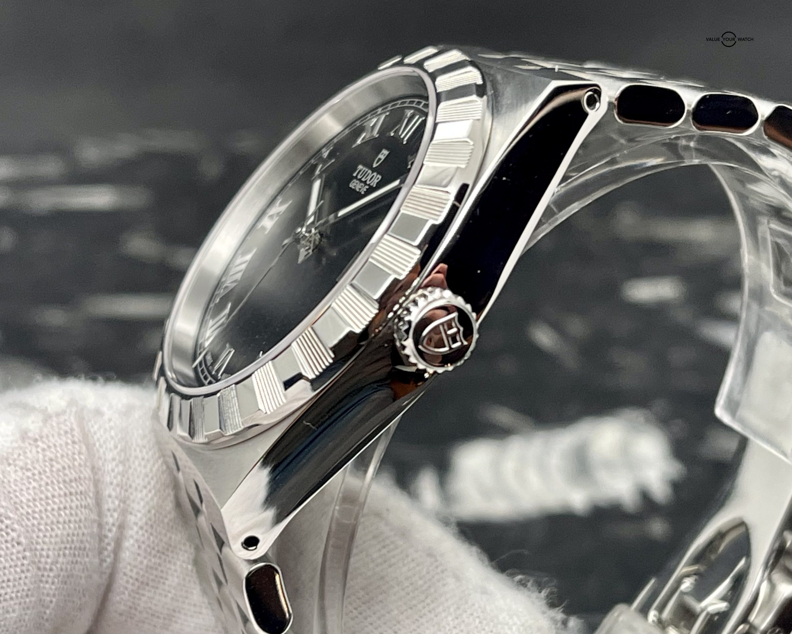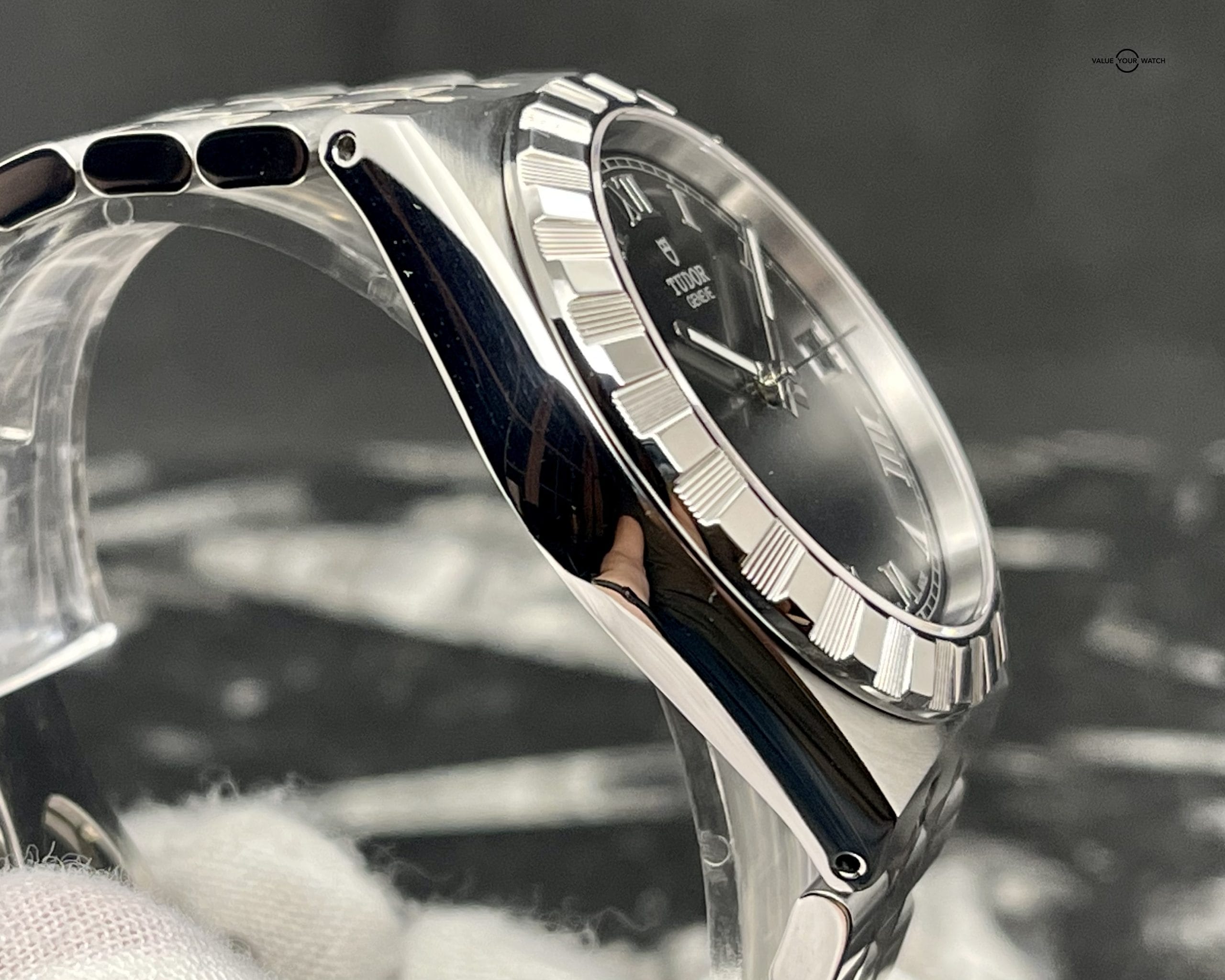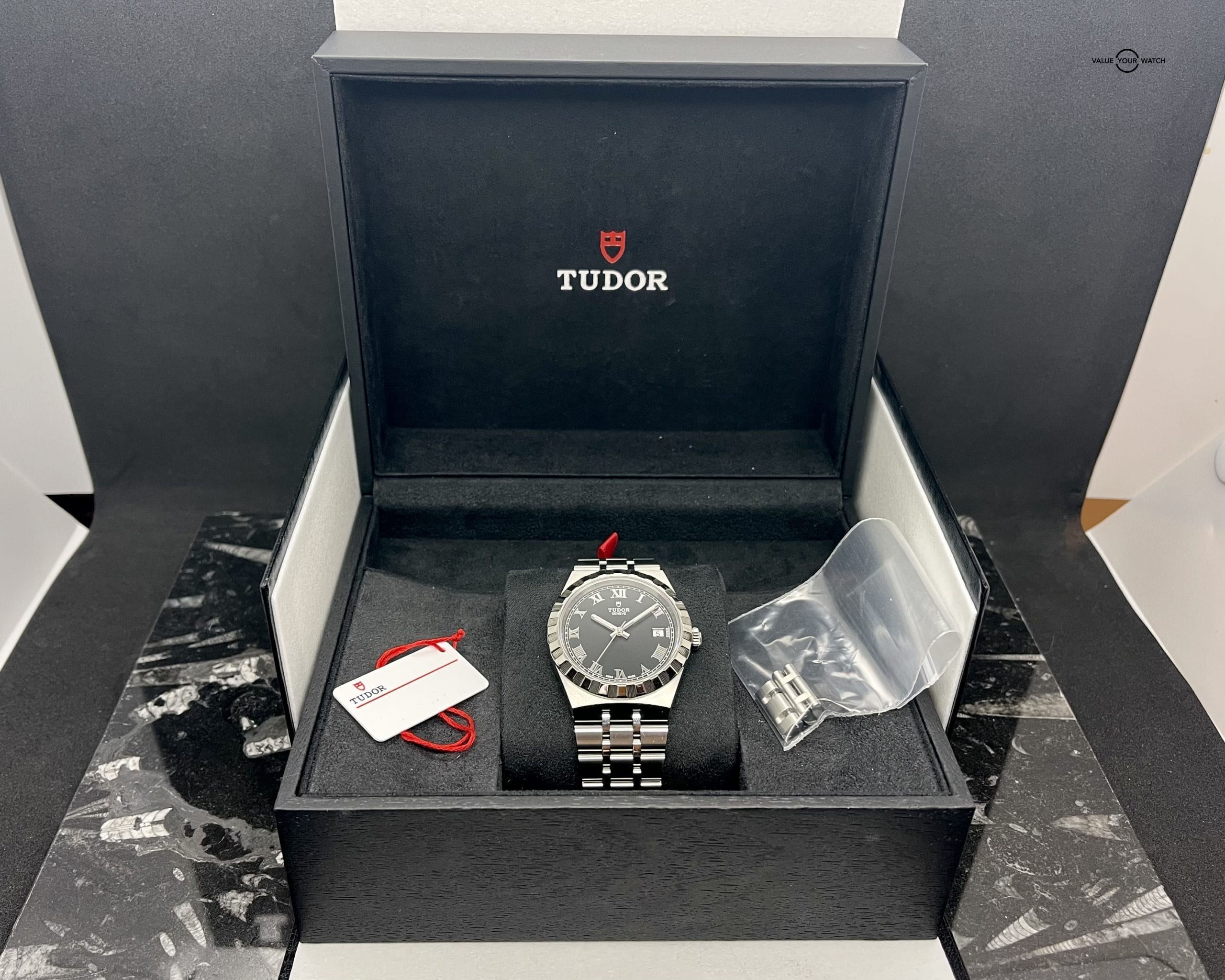 This watch comes with outer protective sleeve, inner protective foam, outer box, inner box, double hang tags, and extra links. The case shows some marks on the bottom lugs but is otherwise fairly clear, the bracelet and buckle are in great shape aside from some wear concentrated to the top links, and the sapphire crystal is flawless. Get this beautiful pre-owned time piece before it’s gone!