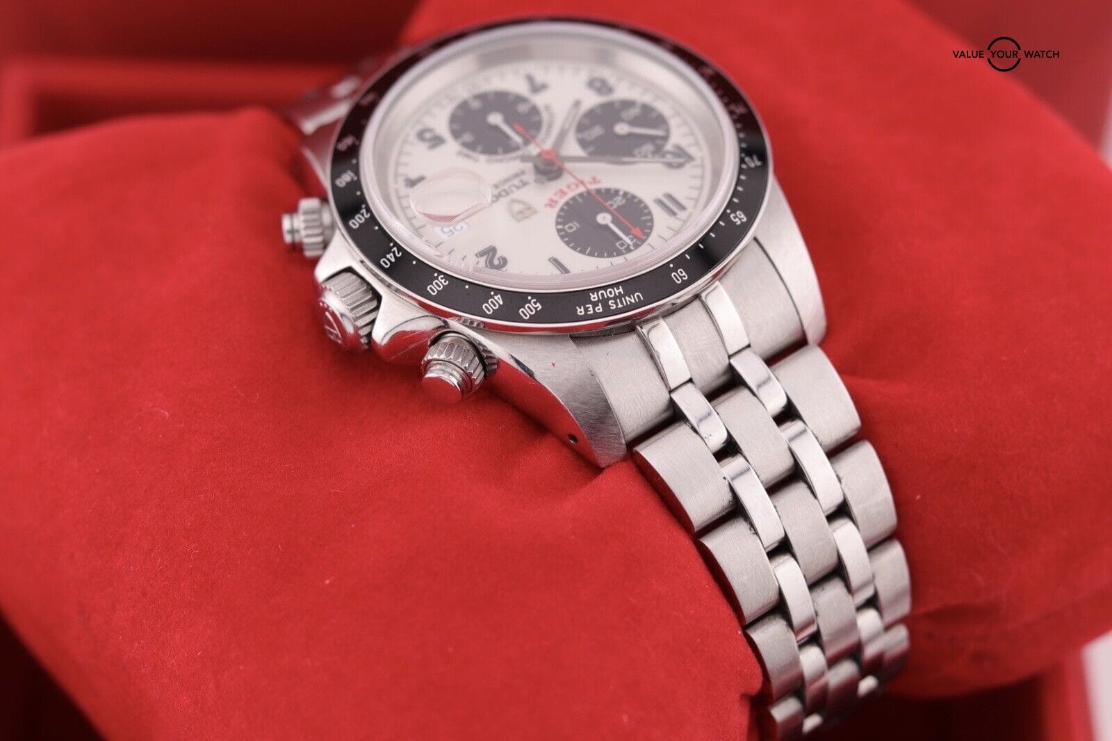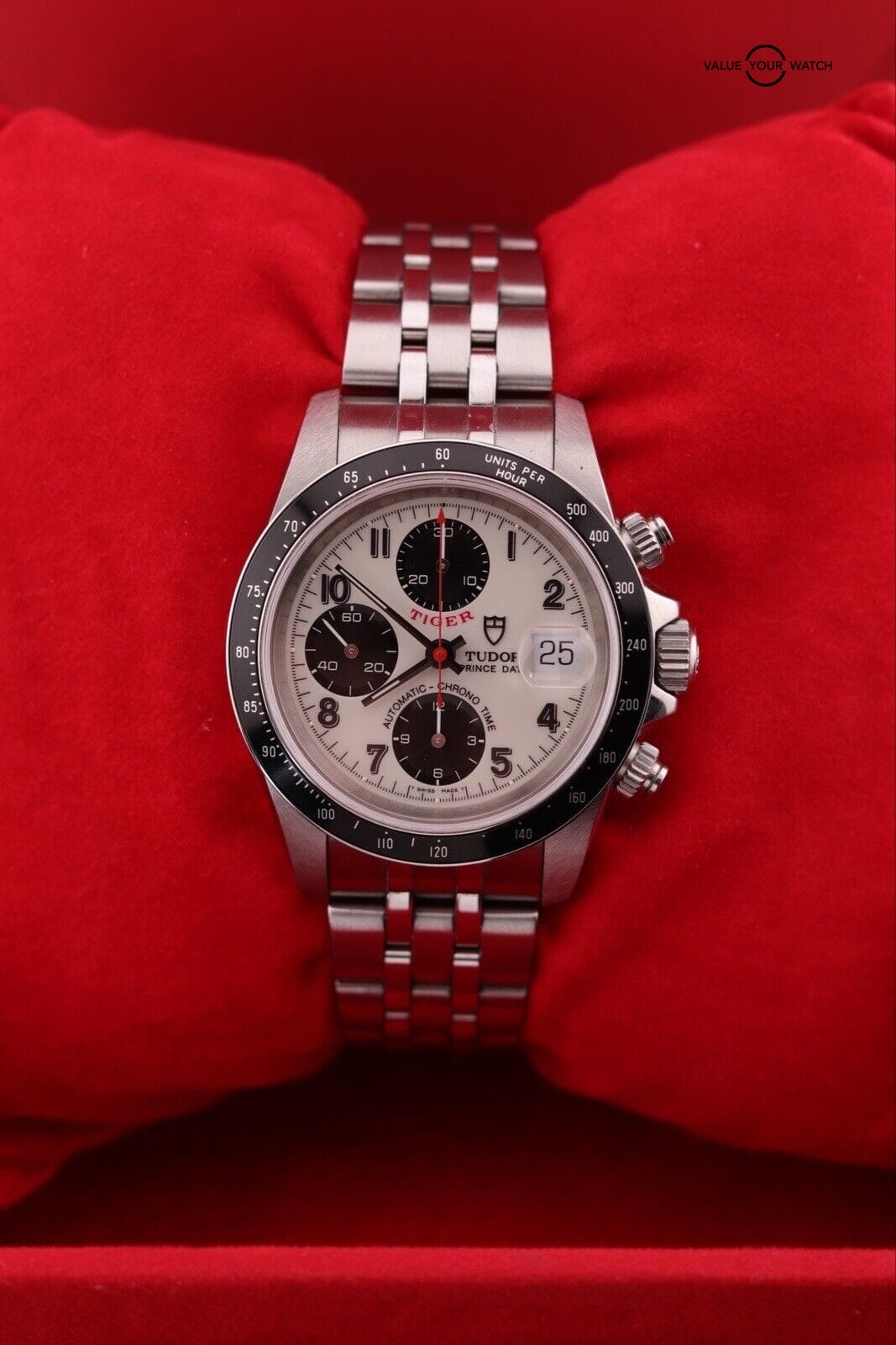 Research the current market to set a realistic price for the TUDOR Tiger Prince Date Chronograph 79260. The price should reflect the watch’s condition, rarity, and the completeness of original accessories and documentation.