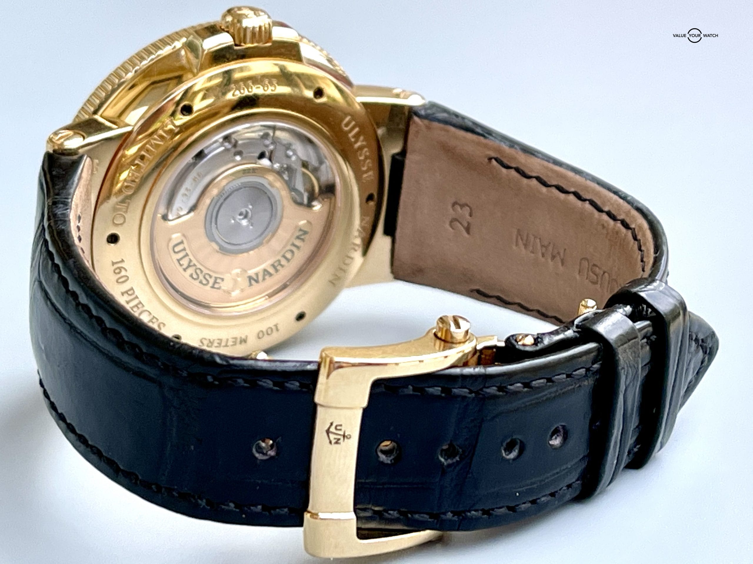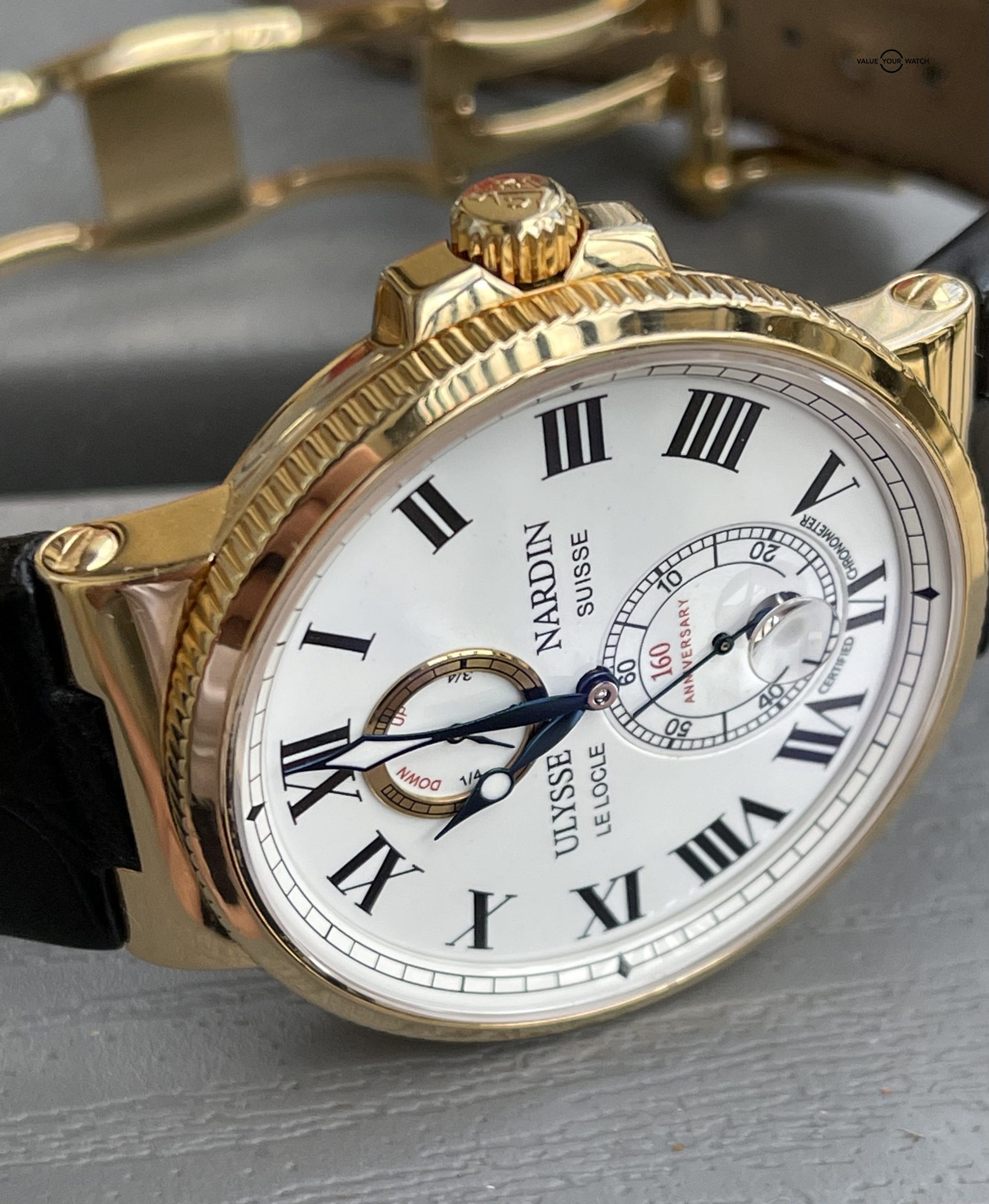 For the discerning gentleman who appreciates the finer things in life, dares to be subtly different, yet seeks incredible value, I offer this stunning, limited edition Ulysse Nardin Marine Chronometer in 18-karat rose gold.