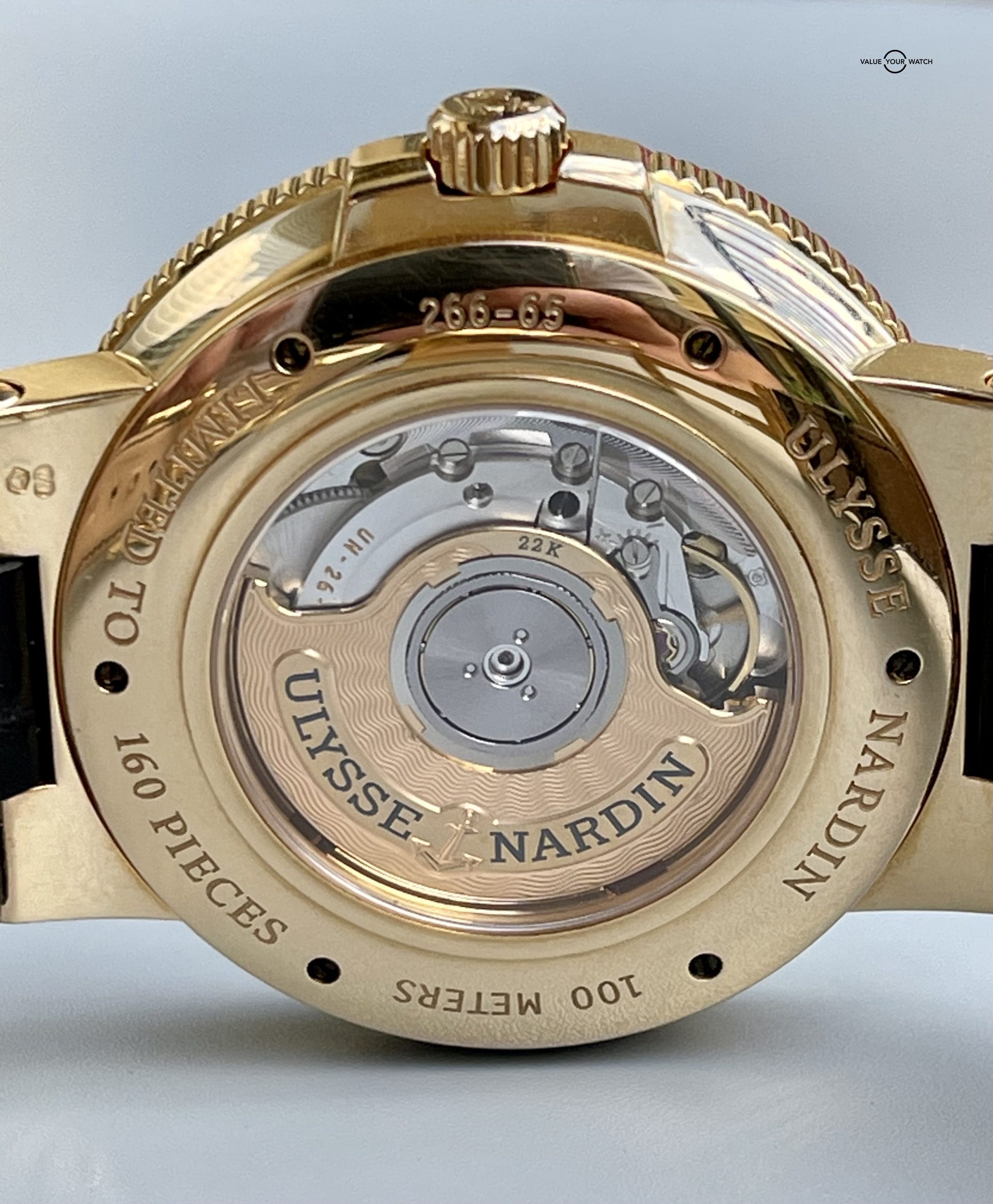 Ulysse Nardin Marine Chronometer 18k Rose Gold Limited Edition Crocodile Strap 266-65, B&P