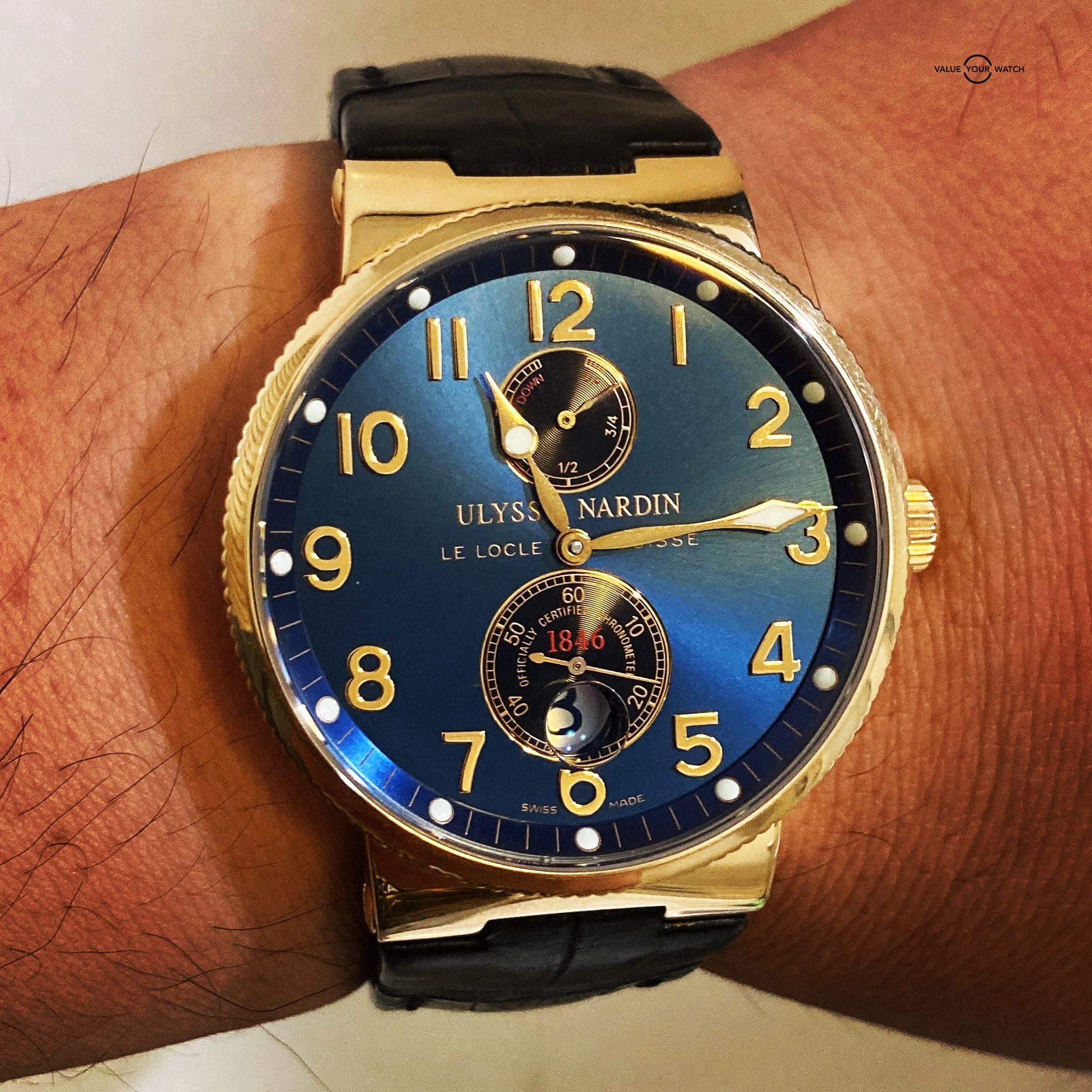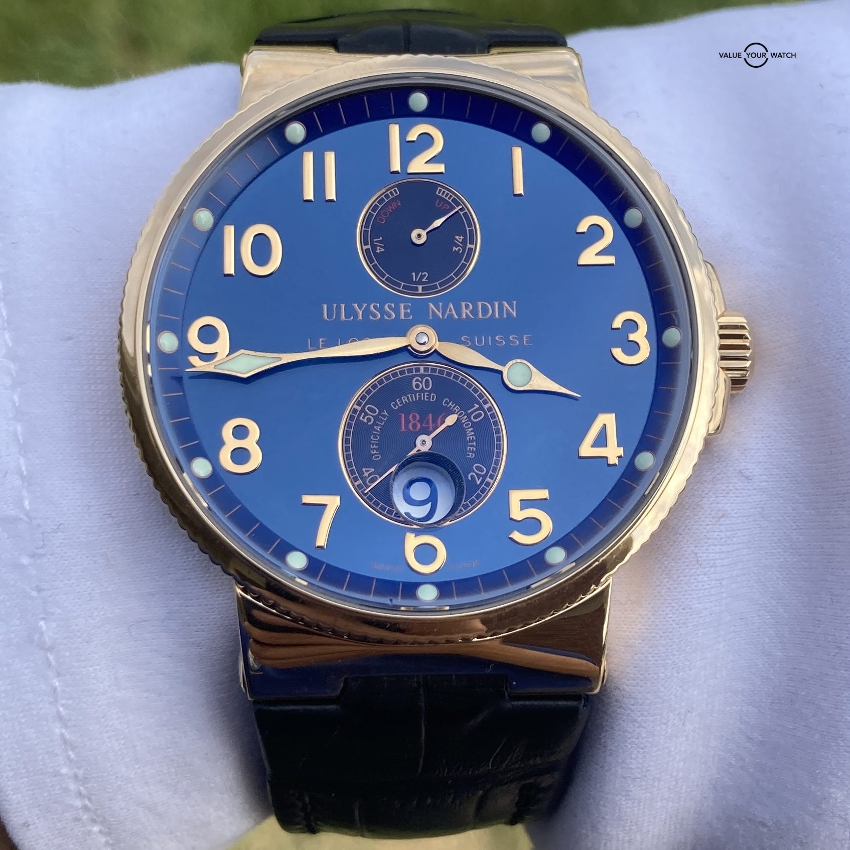 Guide to Buying and Selling Ulysse Nardin MAXI MARINE CHRONOMETER 266-66 18k Rose Gold Blue Dial Mens Watch Online