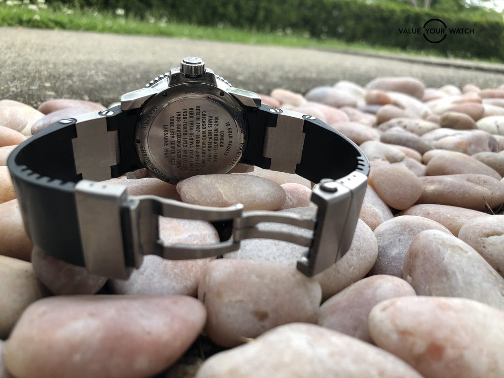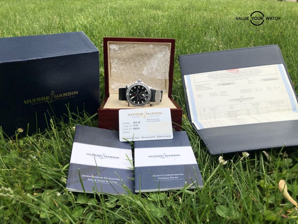 This beautiful timepiece comes in a complete set. Original box, papers and an extra strap are included. The watch is in perfect functioning condition there is just a very minor hairline scratch on the crystal (as seen on the picture).