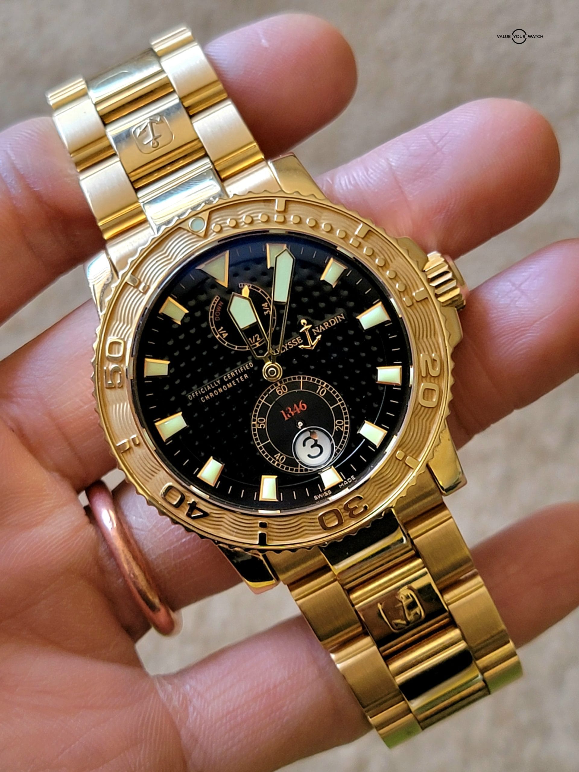This one is for the UN gold lovers. Incredibly gorgeous and hefty piece. Comes with box, books and last service receipt 2018