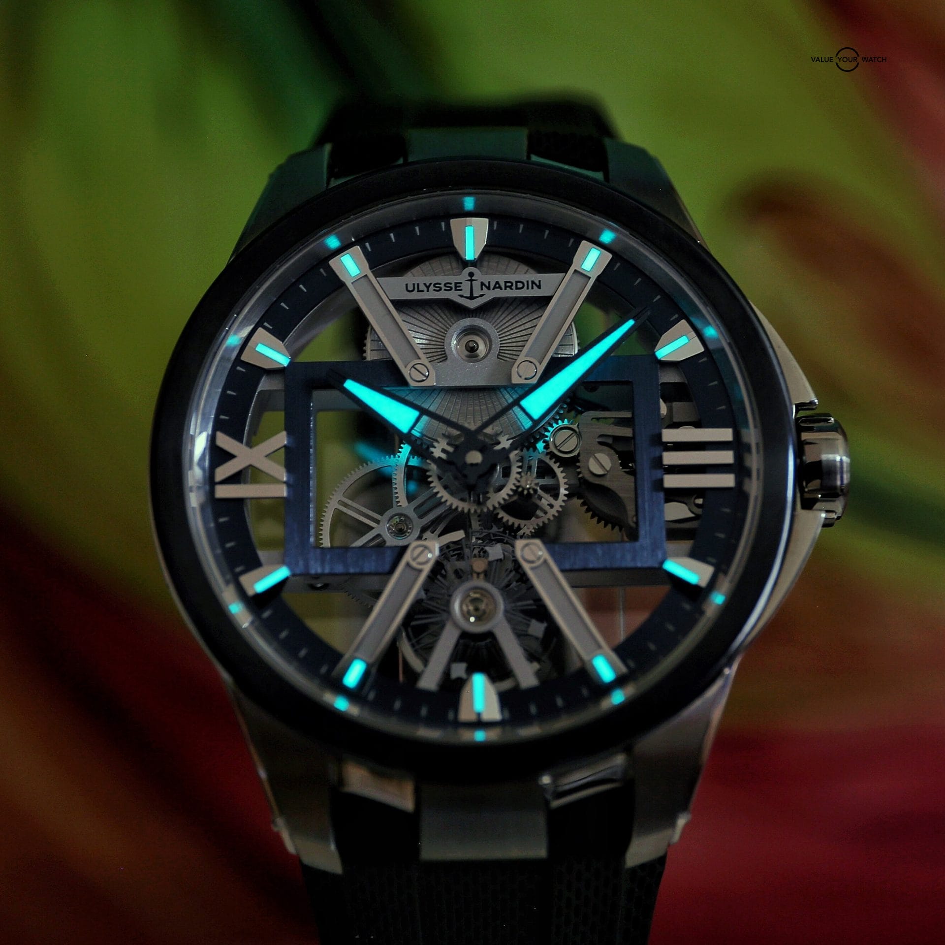 The Ulysse Nardin Blast Skeleton X is a stunning timepiece with a transparent dial and case back to showcase the intricate inner workings of the watch. It looks great dressed up or as a casual watch. It’s a lightweight timepiece that is also very comfortable to wear.
