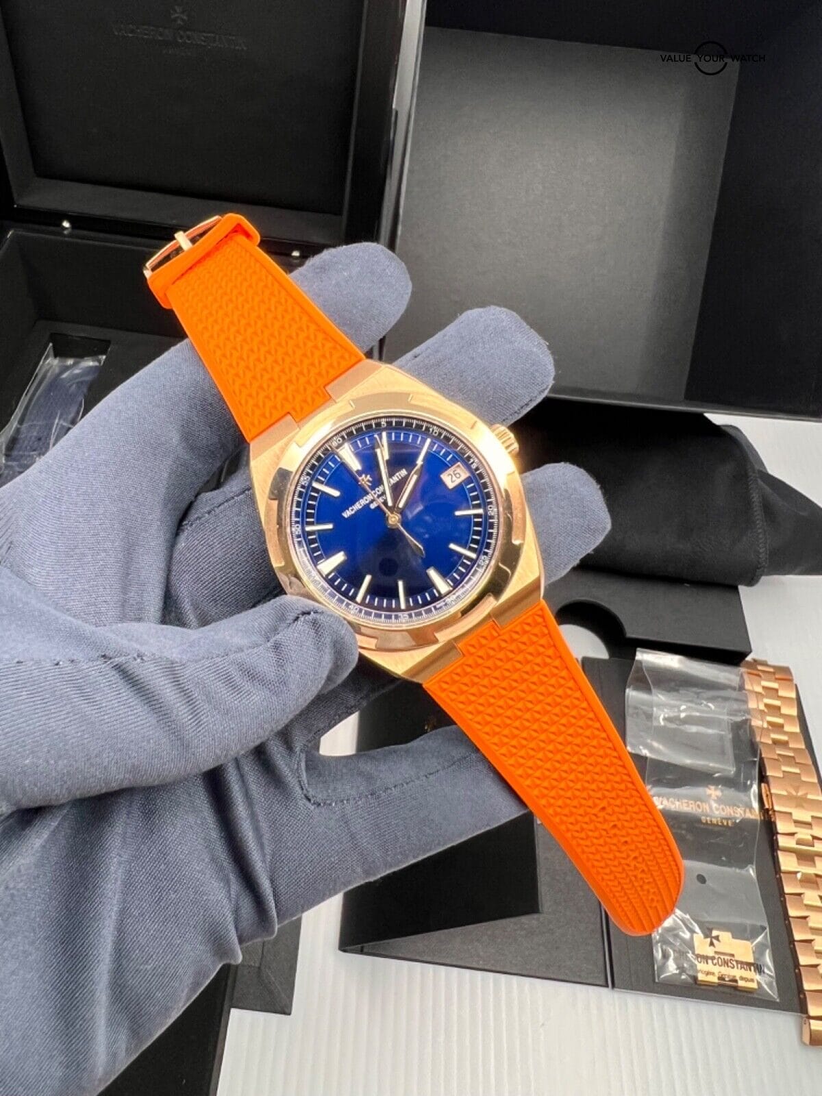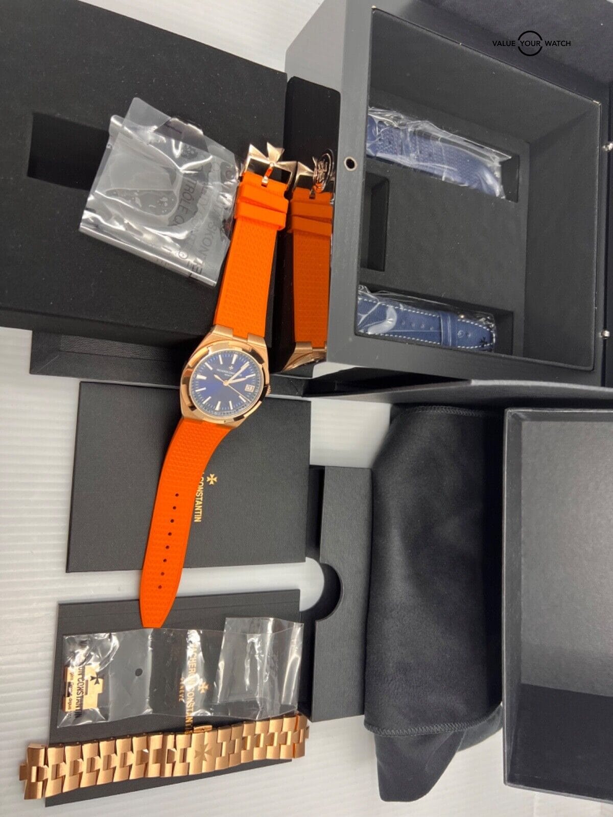 Summary of 2022 VIP Orange Strap Unpolished Vacheron Constantin Overseas Rose Gold Blue Dial
