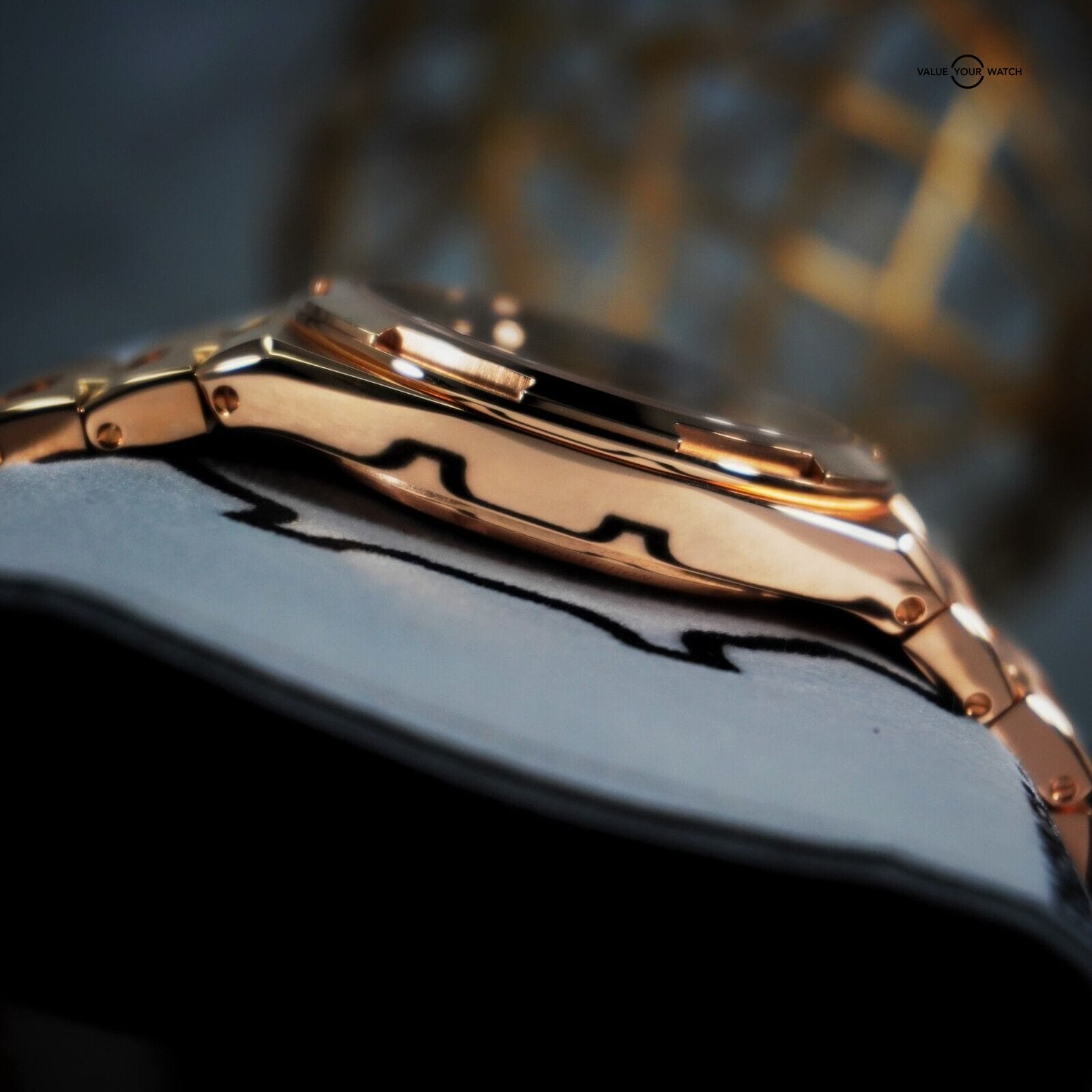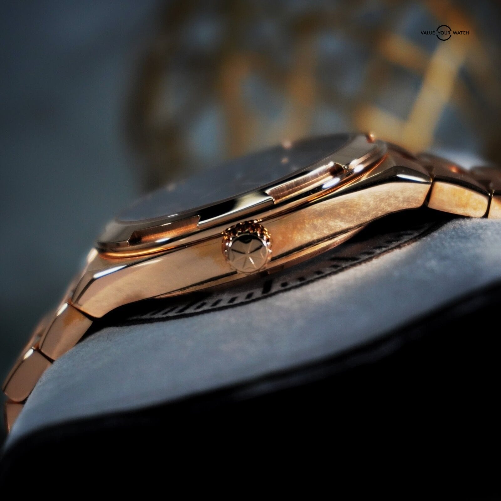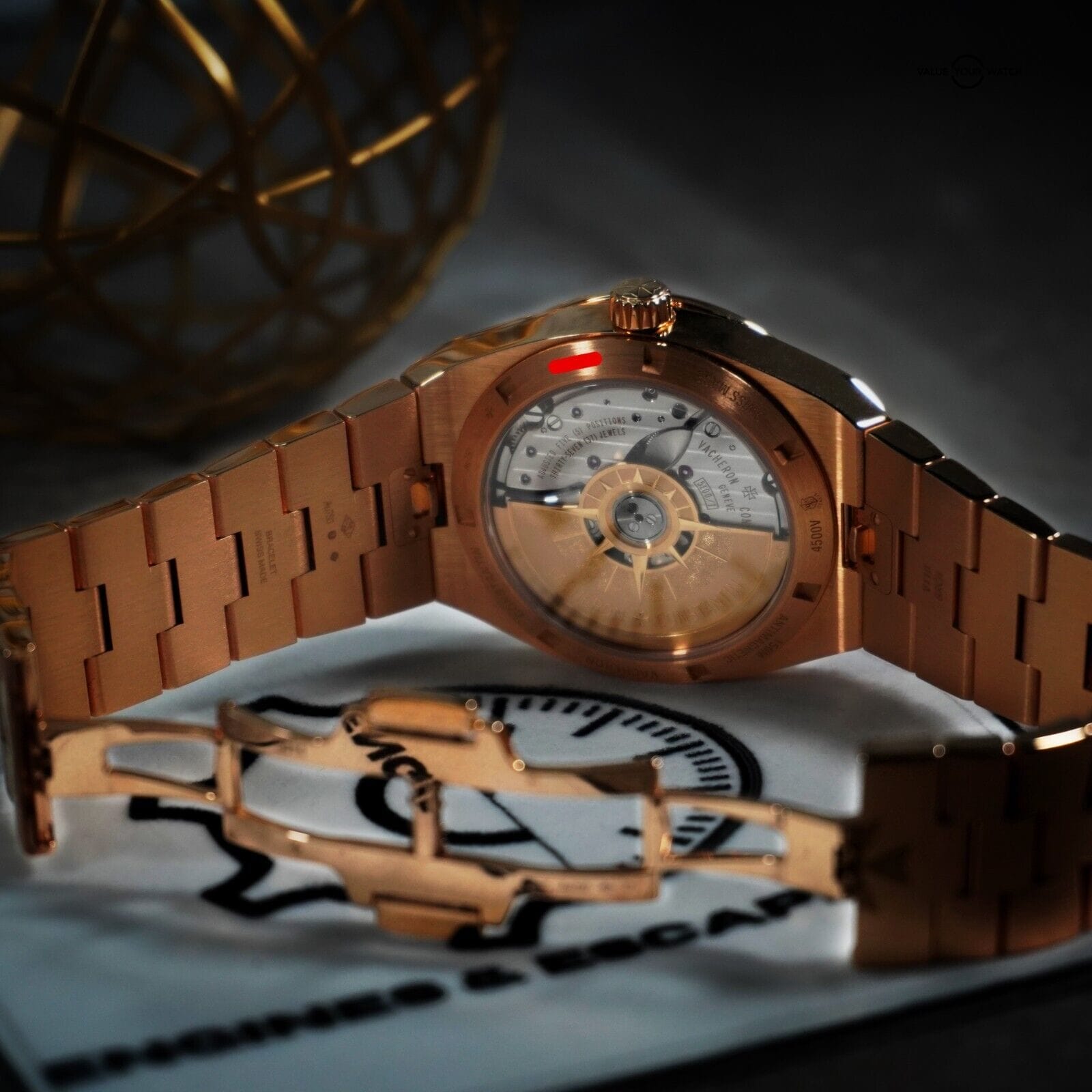 Stunning Vacheron Constantin Overseas with striking blue dial. This timepiece needs no introduction as its one of the flagship models in Vacheron’s lineup. This beautiful timepiece features a beautiful movement produced in-house by Vacheron, visable through the exhibition caseback. The amazing blue dial works so well against the rose gold case & this timepiece feels superb on the wrist.