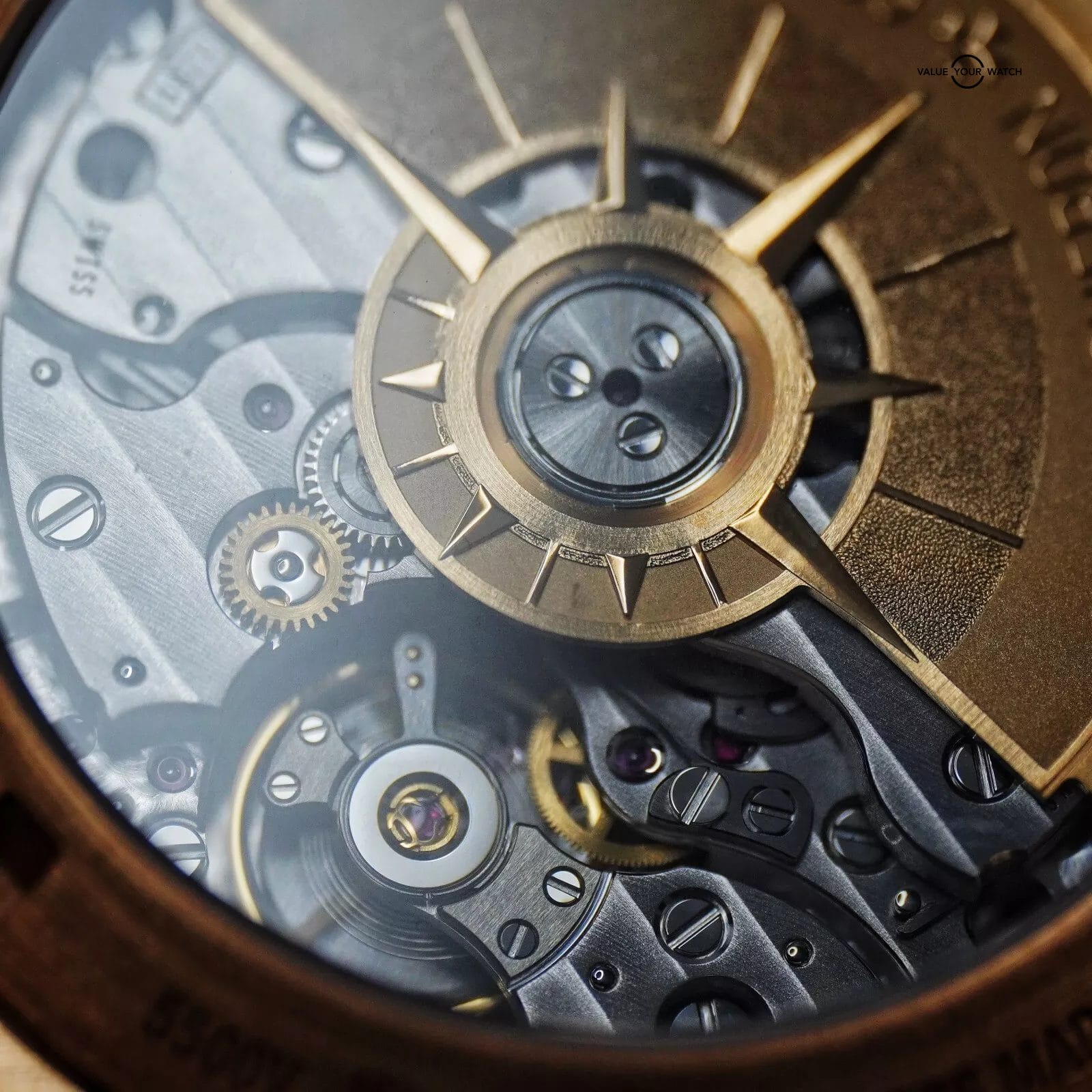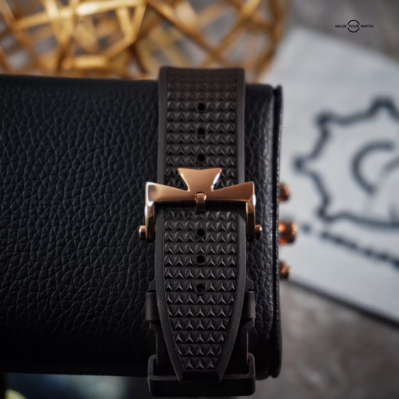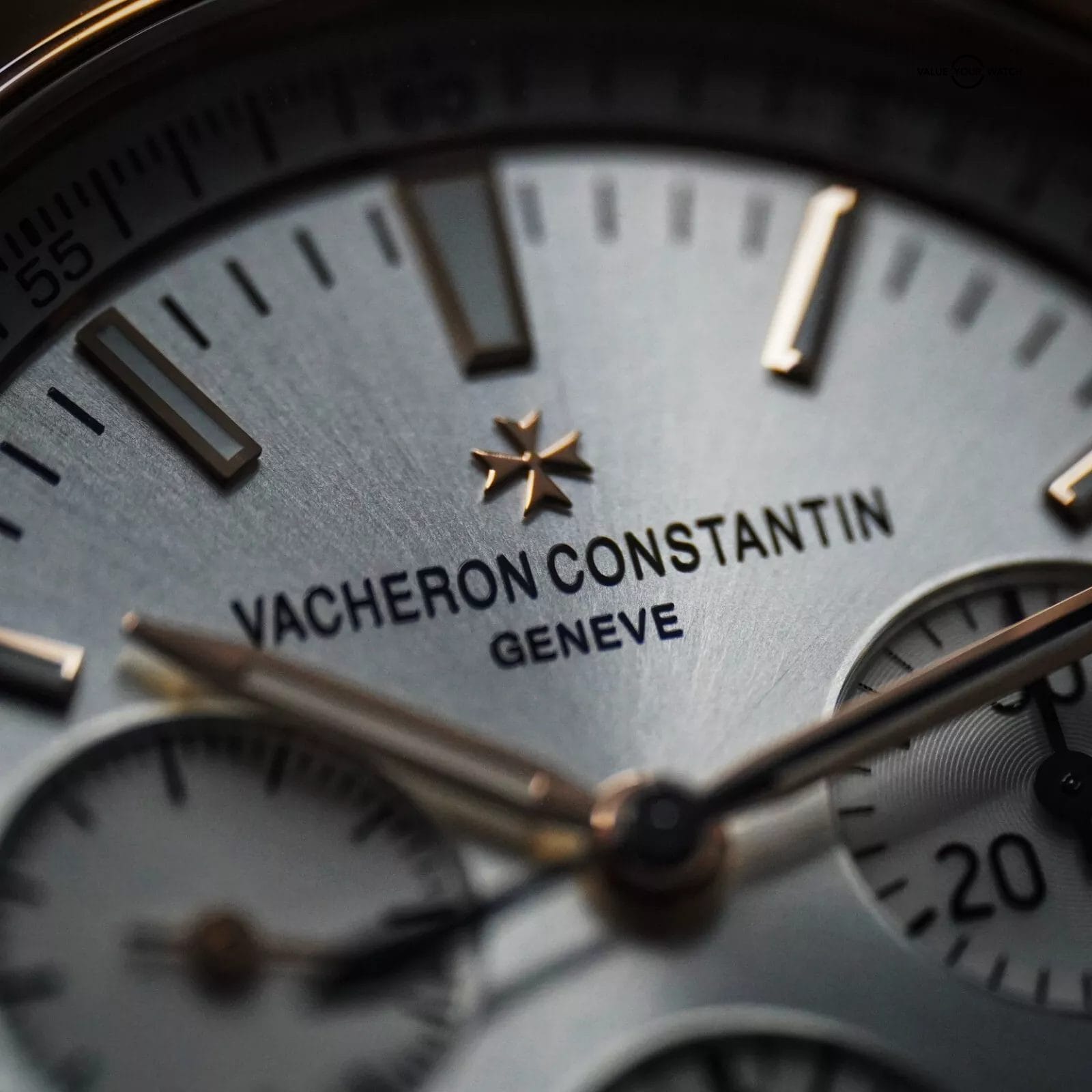 Stunning Vacheron Constantin Overseas with striking silver dial. This timepiece needs no introduction as its one of the flagship models in Vacheron’s lineup. This beautiful timepiece features a classic chronograph movement produced in-house by Vacheron. The signature VC look with rubber & leather straps work so well together in this hefty rose gold combination and this timepiece feels superb on the wrist.