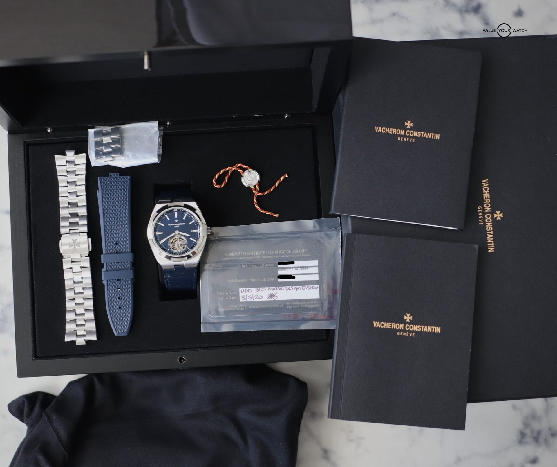 ✅ This watch comes COMPLETE with: VC inner & outer boxes, warranty card (dated 3/2020), authentication booklet, instructions booklet, original hangtag, steel bracelet with all links, blue rubber strap,& blue calf strap.