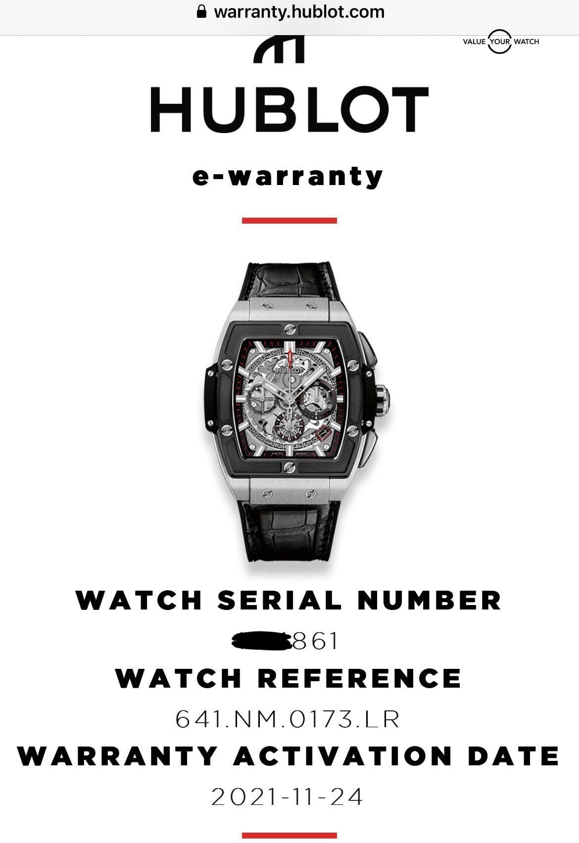 Under Hublot Warranty Until 11/24/2024