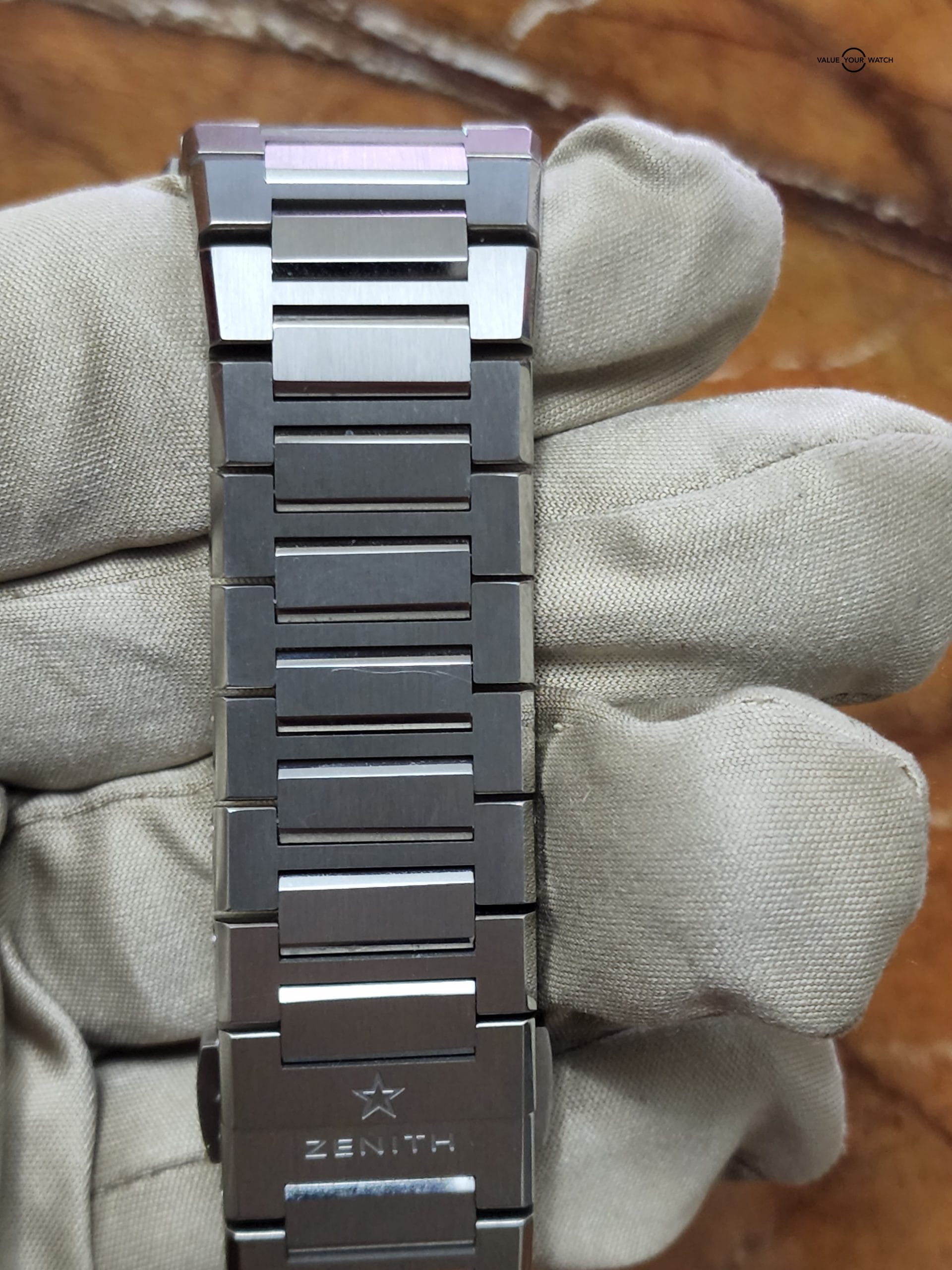 I have owned hundres of watches but the level of craftmanship of this Zenith is beyond this world. this is a completed set from December 2020 still under factory warranty until December 2022. this piece is in excellent condition with very little sign of wear. the original msrp was 14000 usd. the Titanium case make this beast very easy to wear due to its light weight. full links with 2 links of the watch.