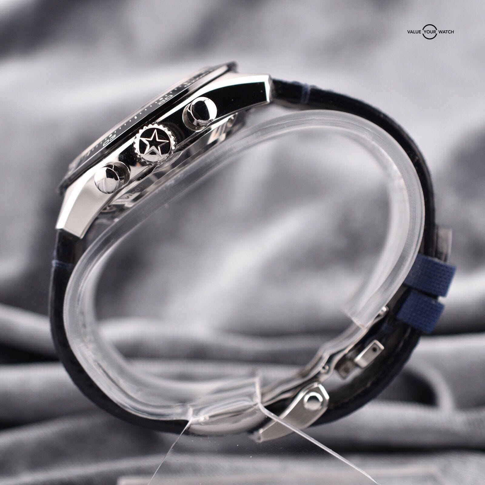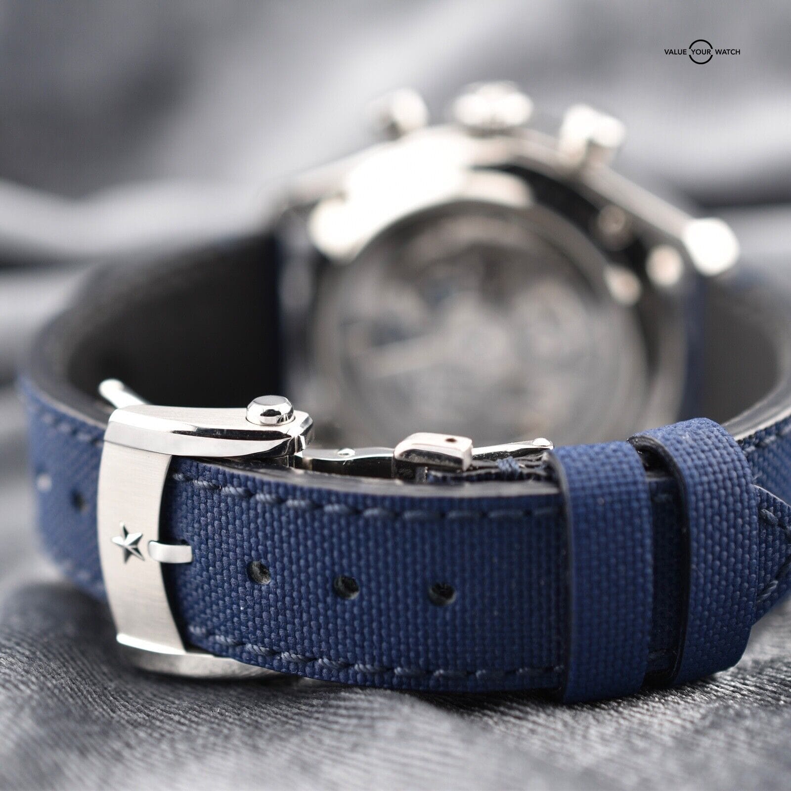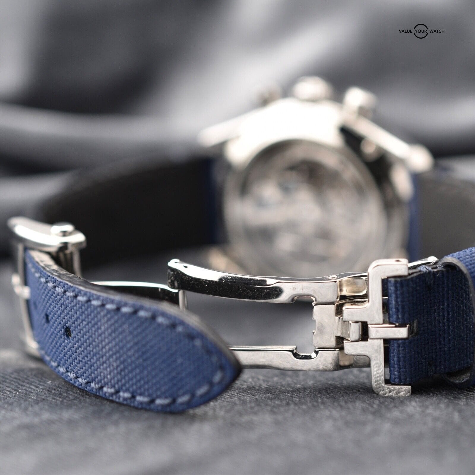 Strap: Blue textile strap offering comfort, style, and durability. The watch also features a stainless steel folding clasp, ensuring a secure and adjustable fit.