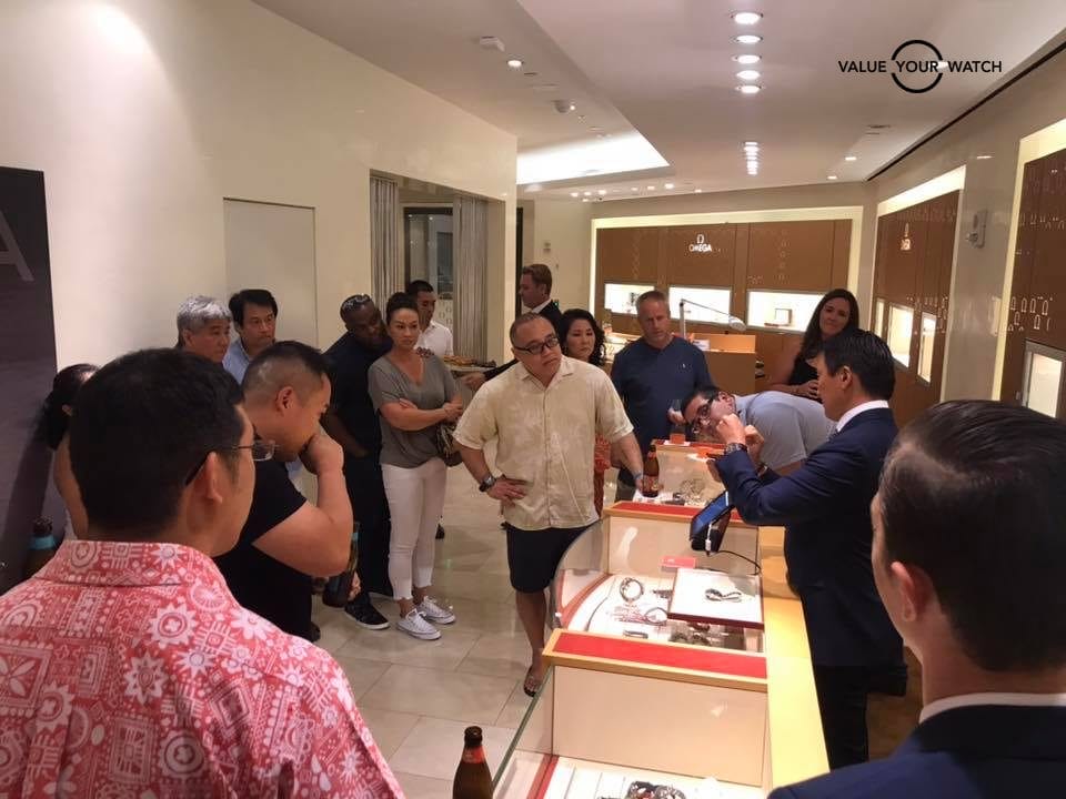 By having a monthly watch meeting, you can think outside of the box where to meet. What we have done is to have our monthly meeting at the Omega store in Waikiki. Because one of our regular members does work there, he asks me if we would like to have the meeting there. Why not? Free food and Free drinks sound like a great plan.