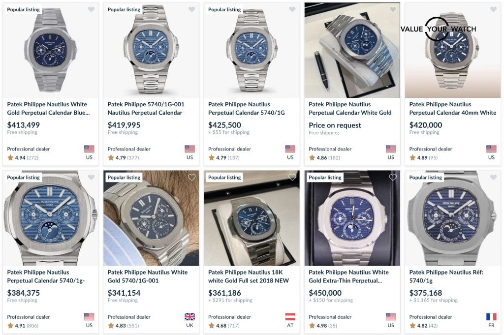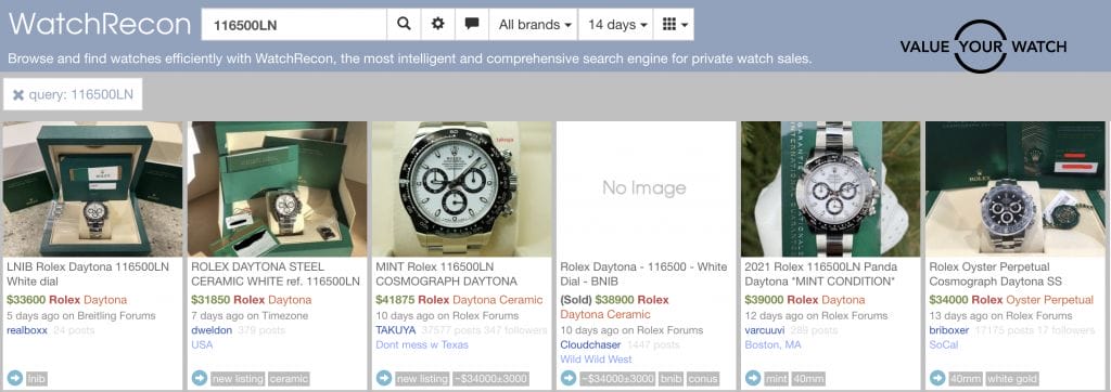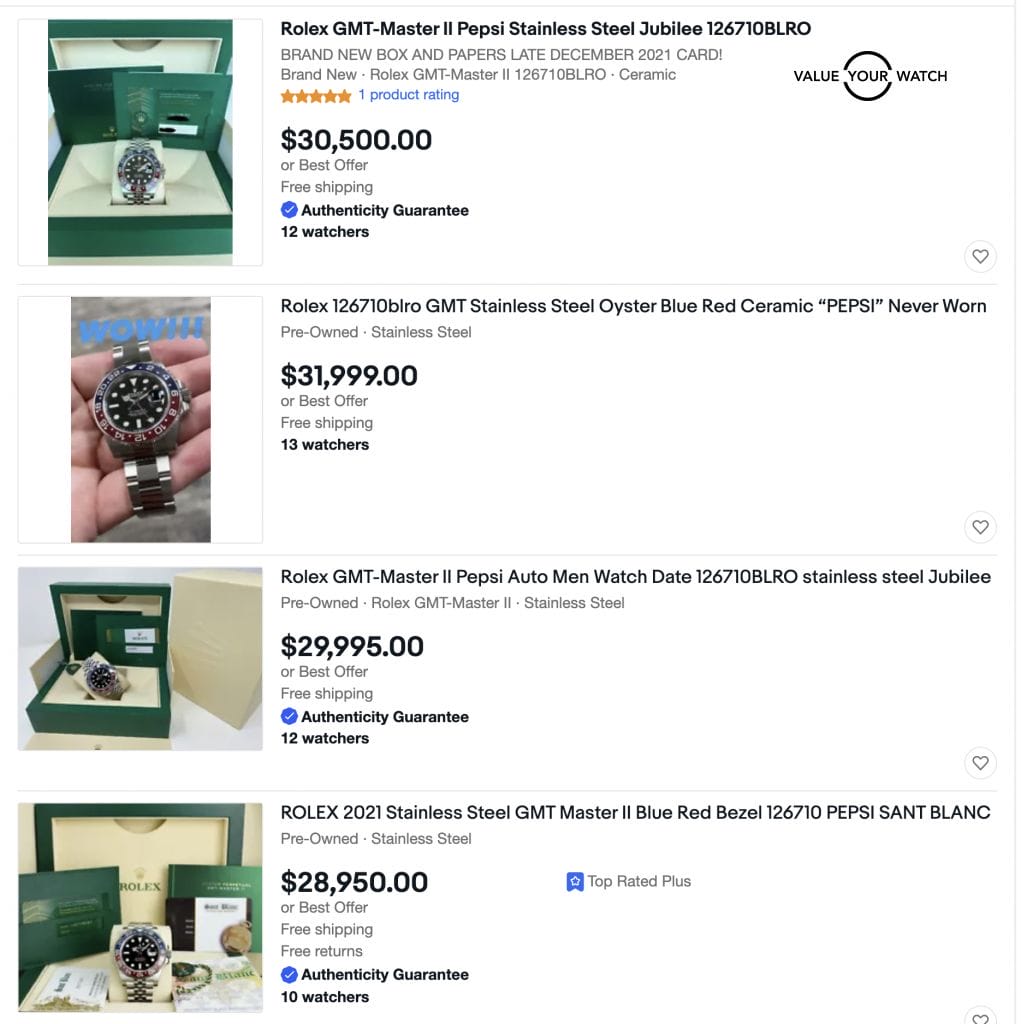 The main sources for pricing data are Chrono24, eBay, and Watch Recon.