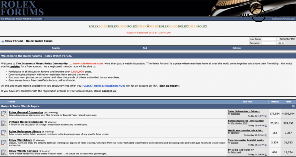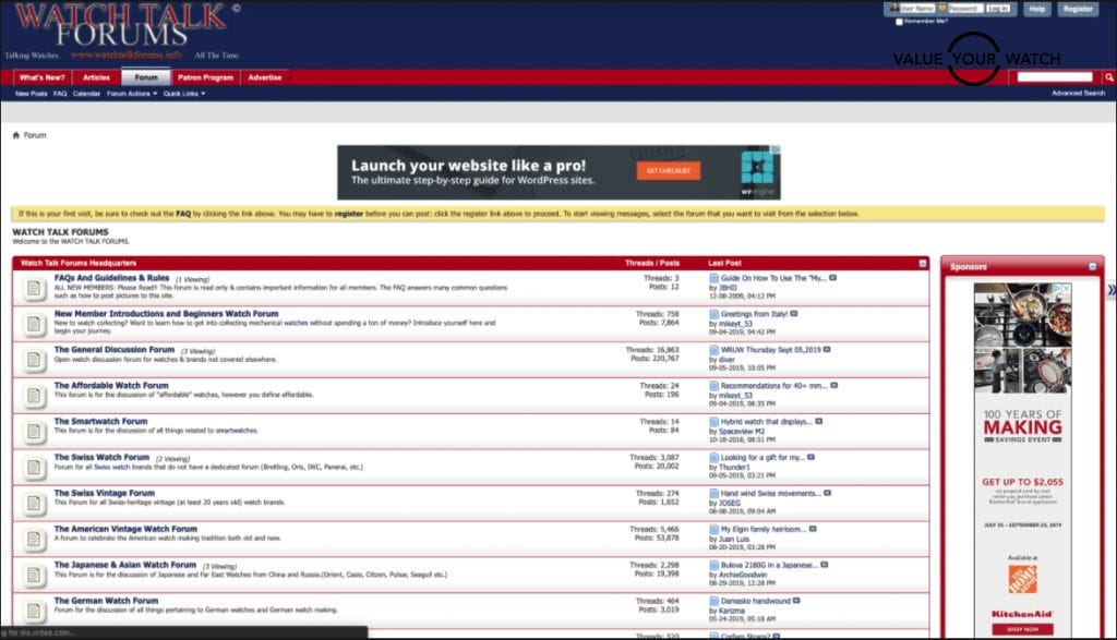 Many forums have been around for a while. You will be able to see that some of the discussion topics have more than a million posts. The great thing about joining the watch forums is the price. It’s FREE! Yes, it is free to join and read and learn about various watch topic. See the list below how much they grew over the years as well.