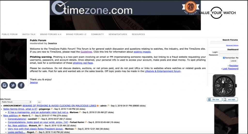 The Timezone forum used to be the most visits forum in the world, however after the years, new watch forums started. I still have a hard time to use this forum due to the way it’s set up, but you can find a lot of valuable information.